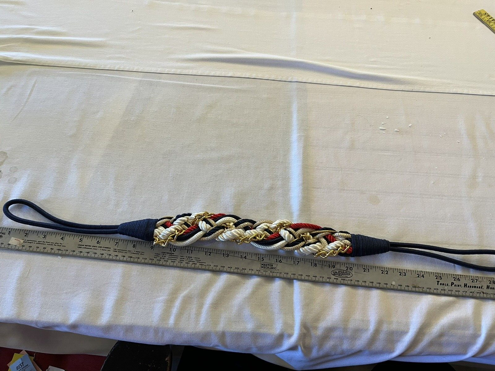 Vintage 1980s Women's Multicolor WOVEN ROPE Belt Red White Blue Gold Length 31