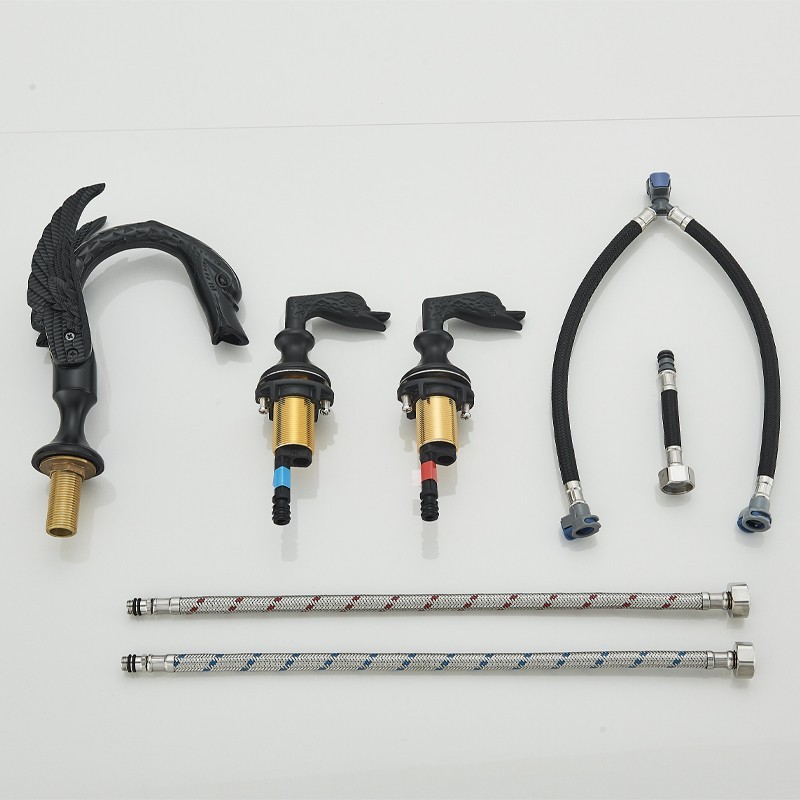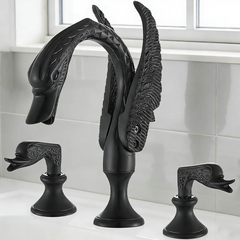 8 Widespread Black Waterfall Bathroom Sink Faucet 3-Hole Swan Basin Mixer Tap