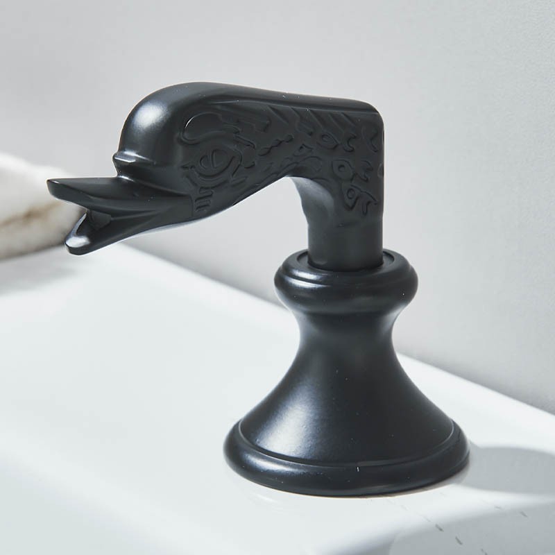 как выглядит 8" Widespread Black Waterfall Bathroom Sink Faucet 3-Hole Swan Basin Mixer Tap фото
