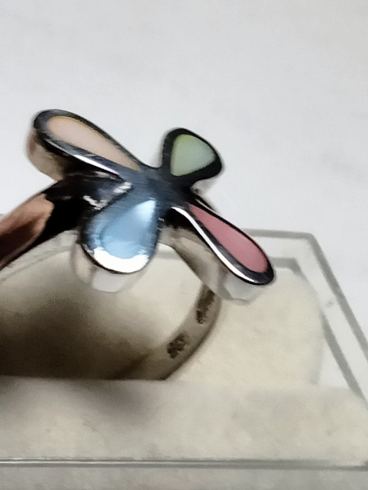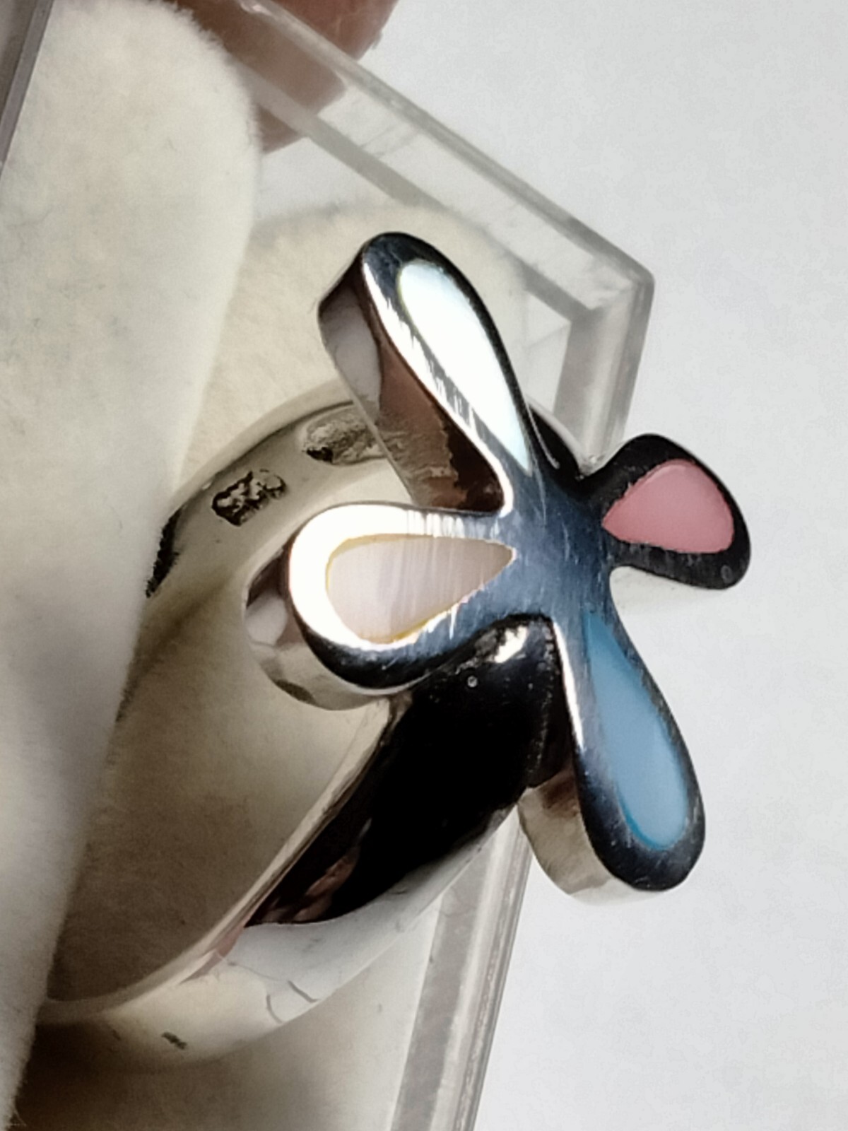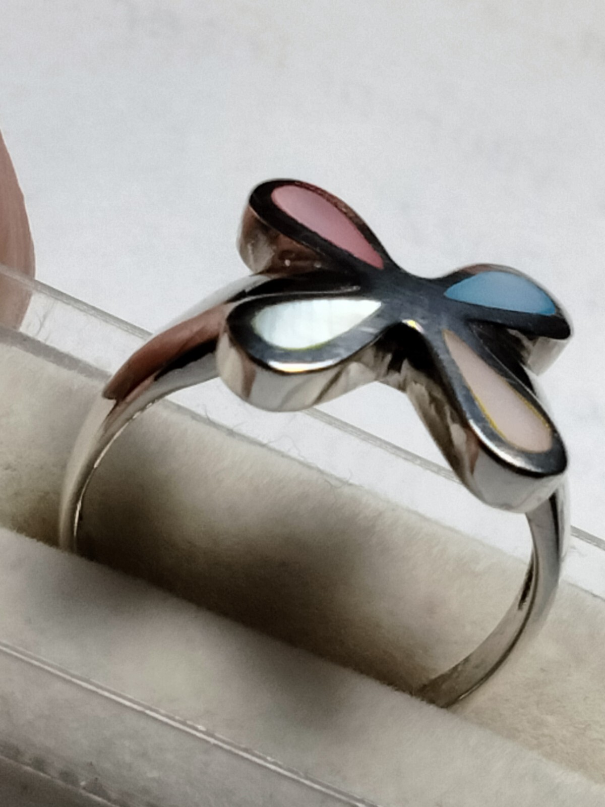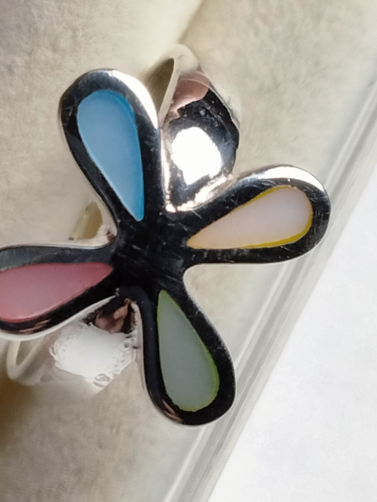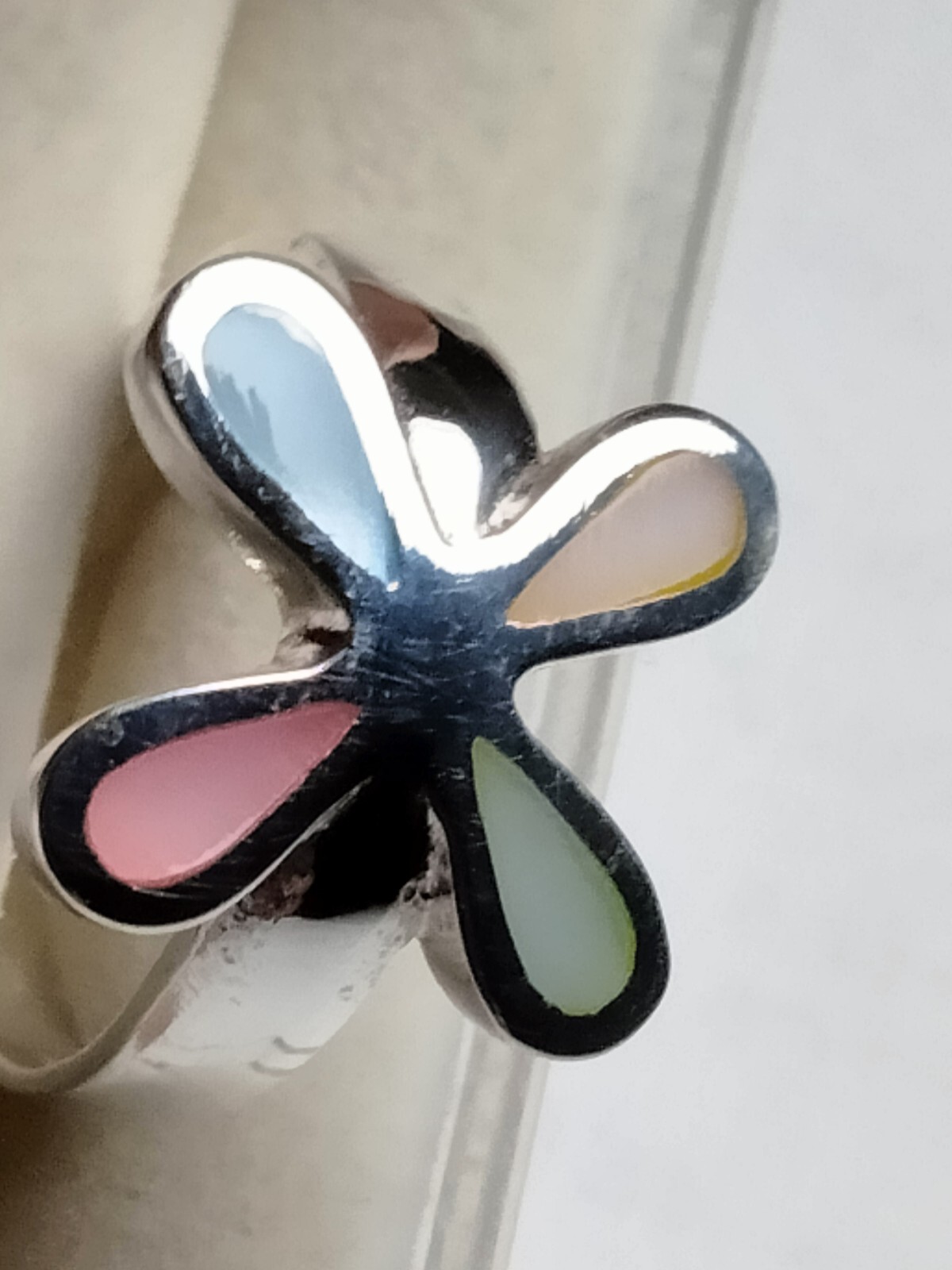 как выглядит LOVELY MOP INLAYS IN FLOWER SHAPE STERLING SILVER.925 RING SIZE 7.75-8.0 фото
