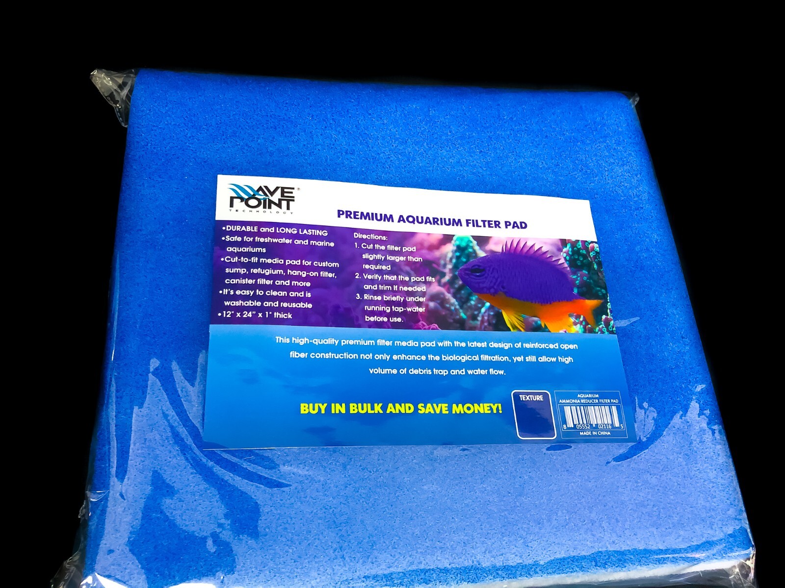 10-FT TOTAL BLUE BONDED AQUARIUM FILTER MEDIA PAD 12 X 24 FILTER FIBER, 5 PACK