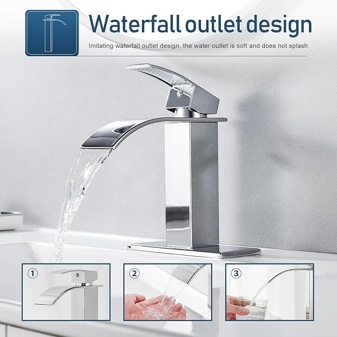 Waterfall Bathroom Sink Faucet Single Handle Basin Vanity Mixer Tap W/6 In Cover