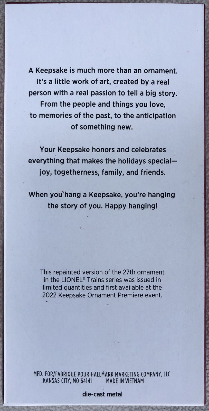 2022 Hallmark Keepsake Lionel Great Northern EP-5 Limited Edition - Hole On Box