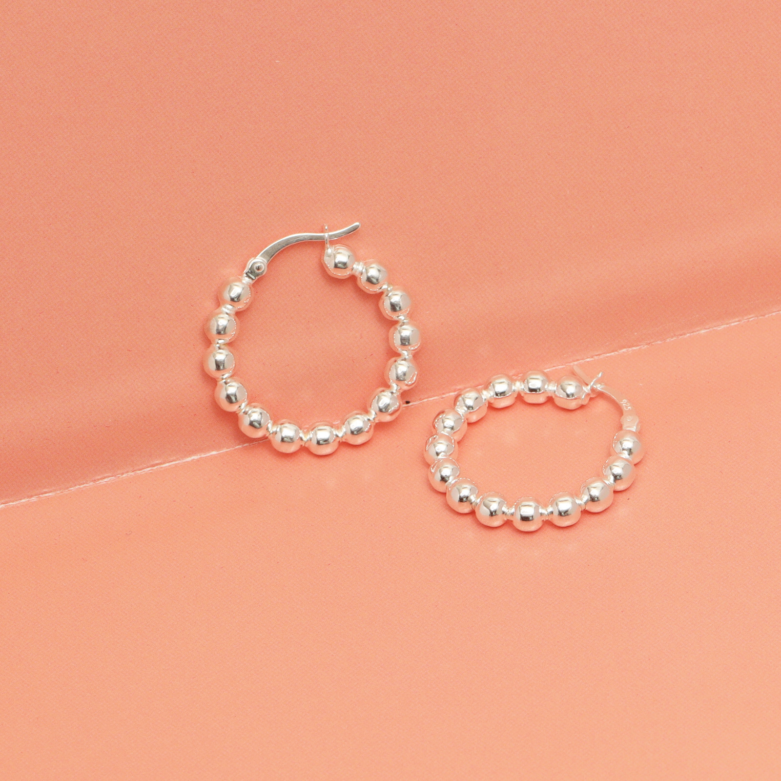 Pure 925 Sterling Silver Beaded Hoop Earrings for Women's Girls Valentines Day