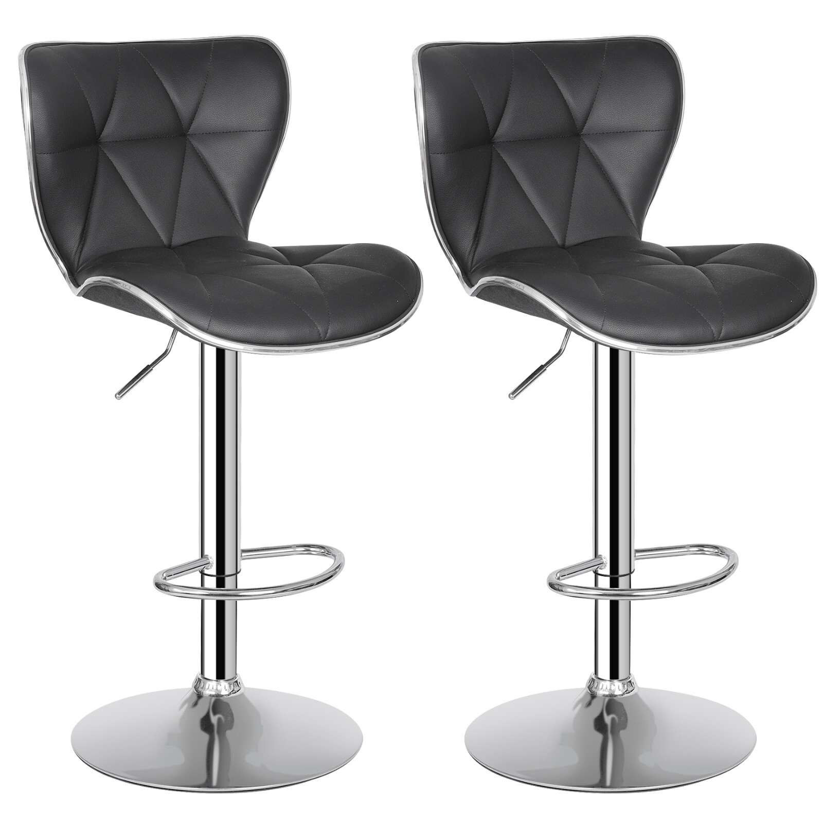 2PCS Adjustable Bar Stools w/Shell Back Soft PU Leather Swivel Bar Stools Durab
