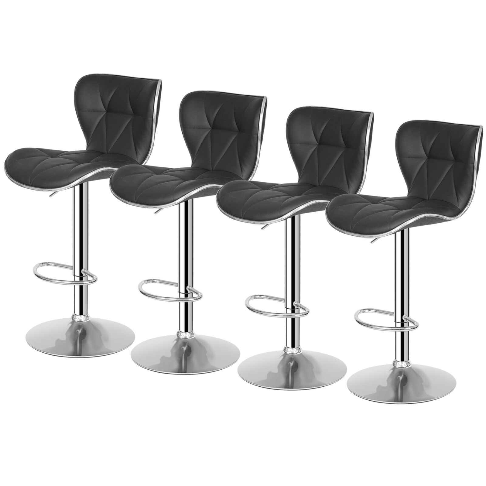 Shell Back Bar Stools Set of 4 Adjustable Bar Stool with Back Kitchen Black