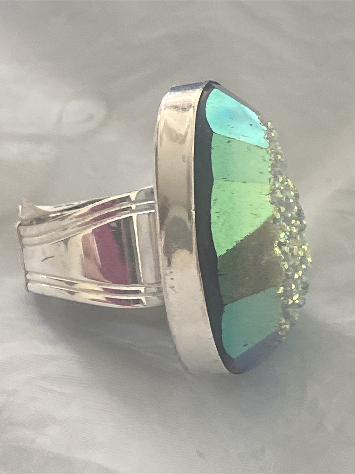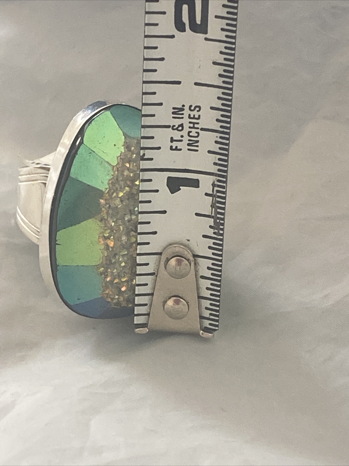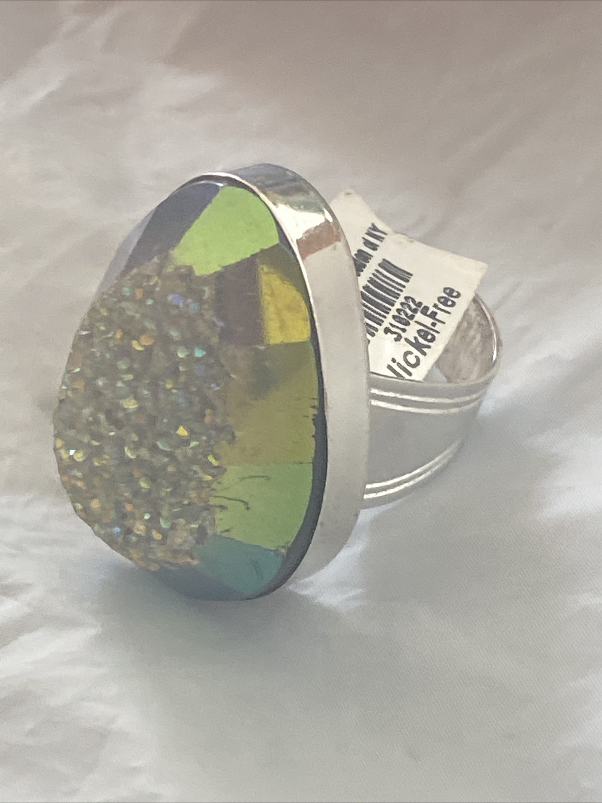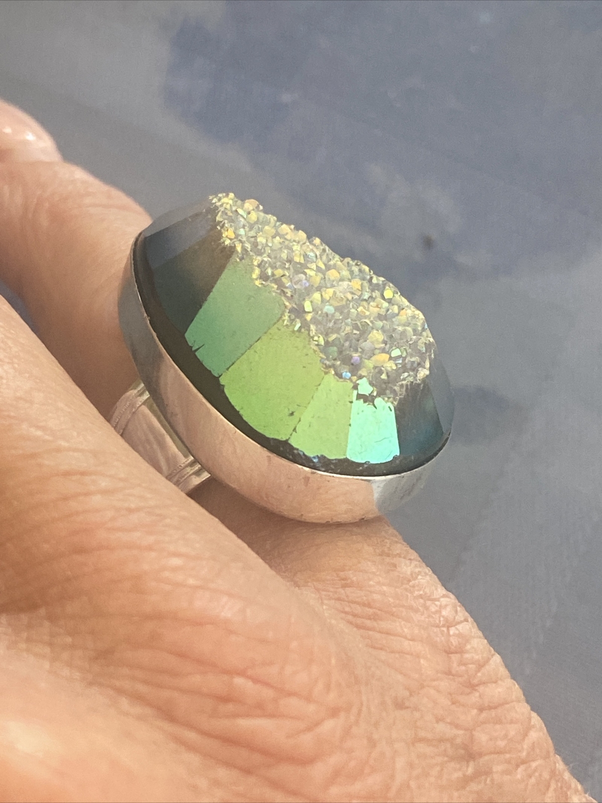 Sterling Silver Large Druzy Quartz Ring Size 9 164
