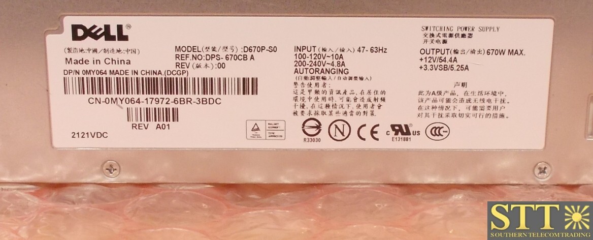 0MY064 DELL DPS670P-S0 POWEREDGE 1950 670W POWER SUPPLY