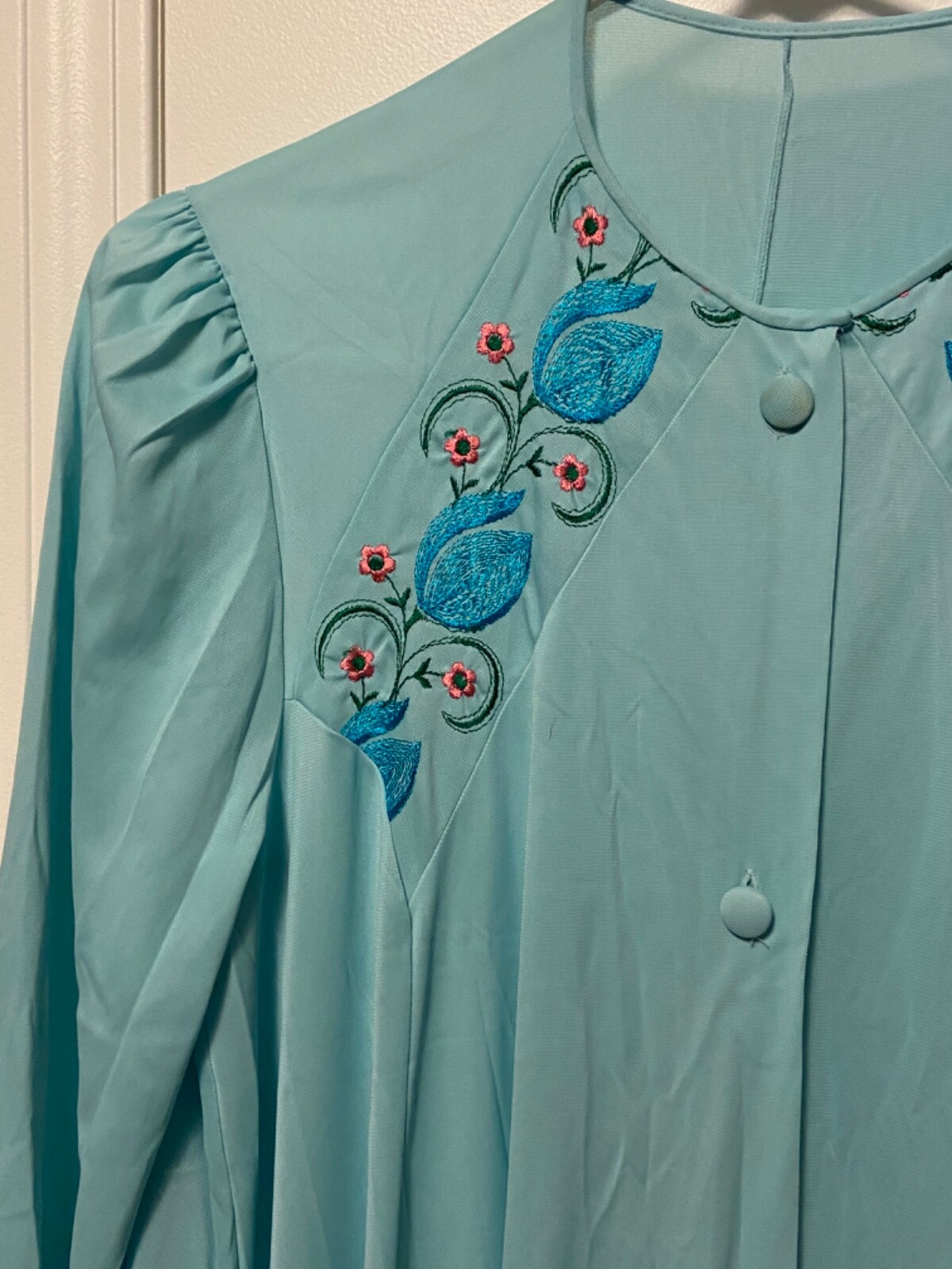 2pc Vintage Vanity Fair size 34 USA Blue Silky Robe Gown Negligee Peignor Set