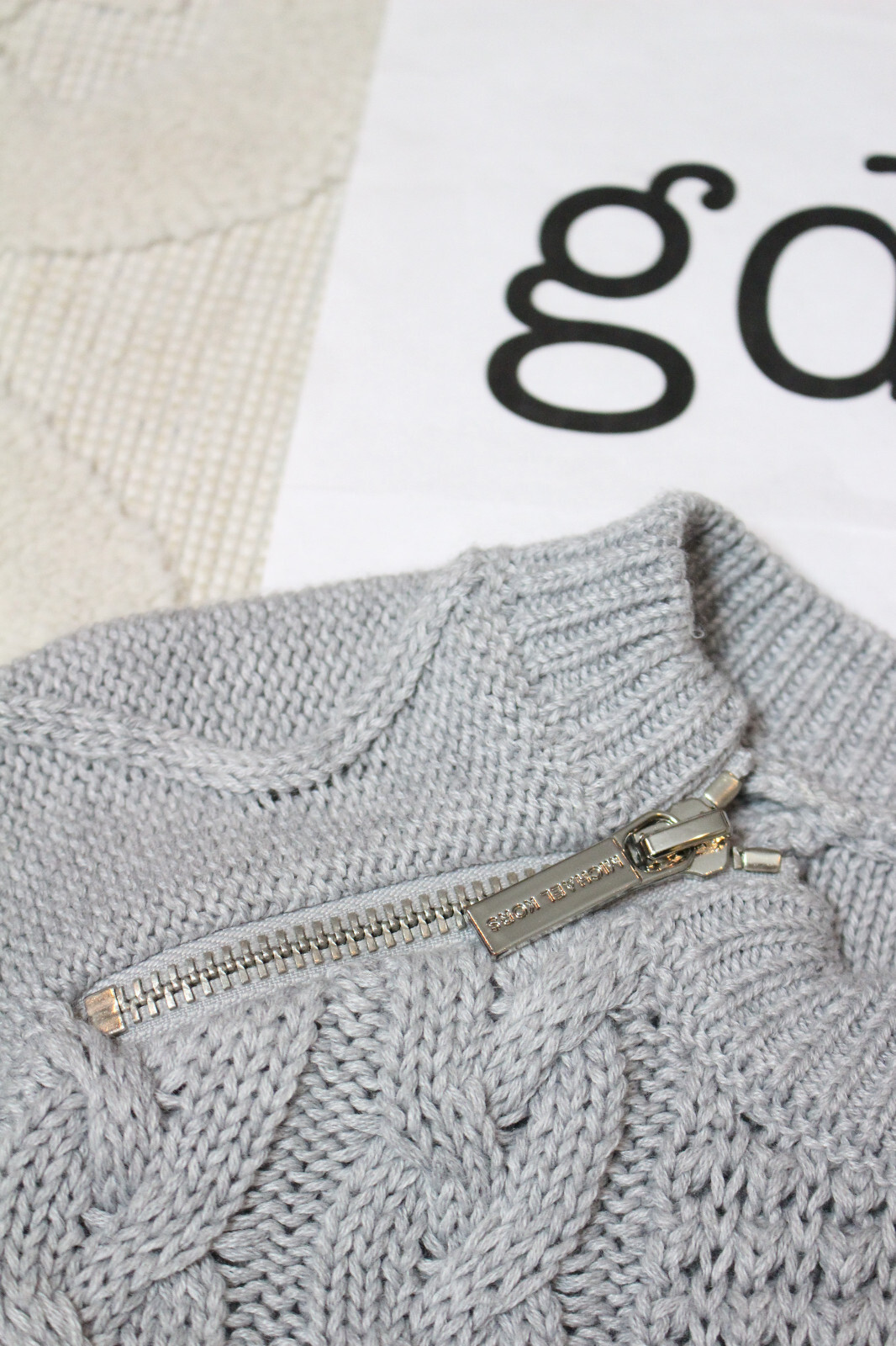 как выглядит MICHAEL Michael Kors Grey Cable Knit Sweater with Shoulder Zippers Womens Sz S фото