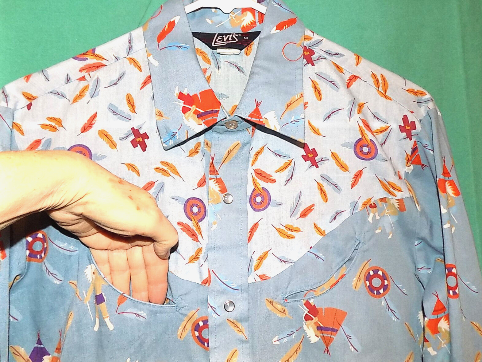 как выглядит Rare Vtg 70s LEVIS WESTERN SHIRT, NATIVE AMERICAN GRAPHICS, PEARL SNAPS, Sz S фото
