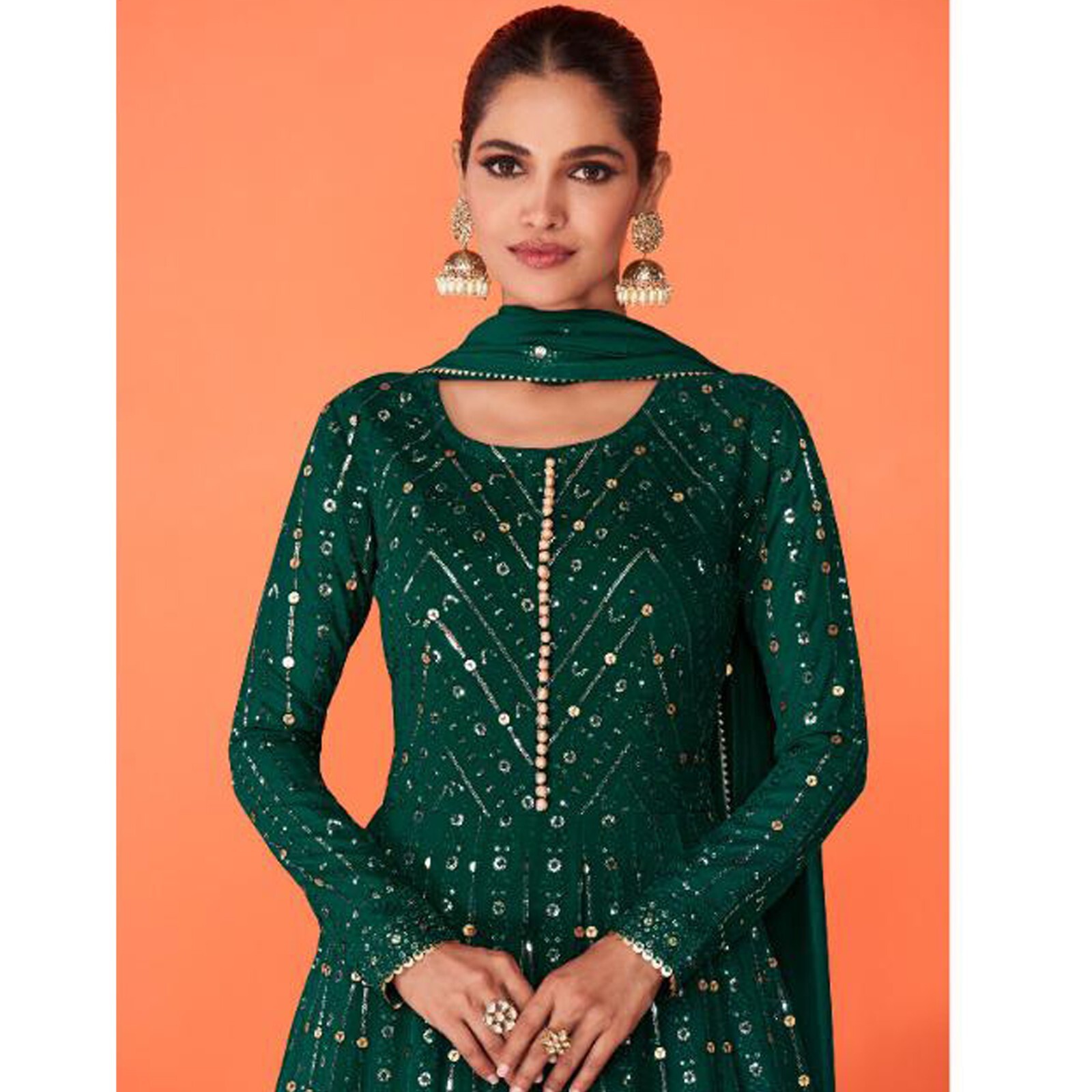 как выглядит Heavy Worked Wedding Wear Womens Georgette Anarkali Gown Suits With Dupatta фото