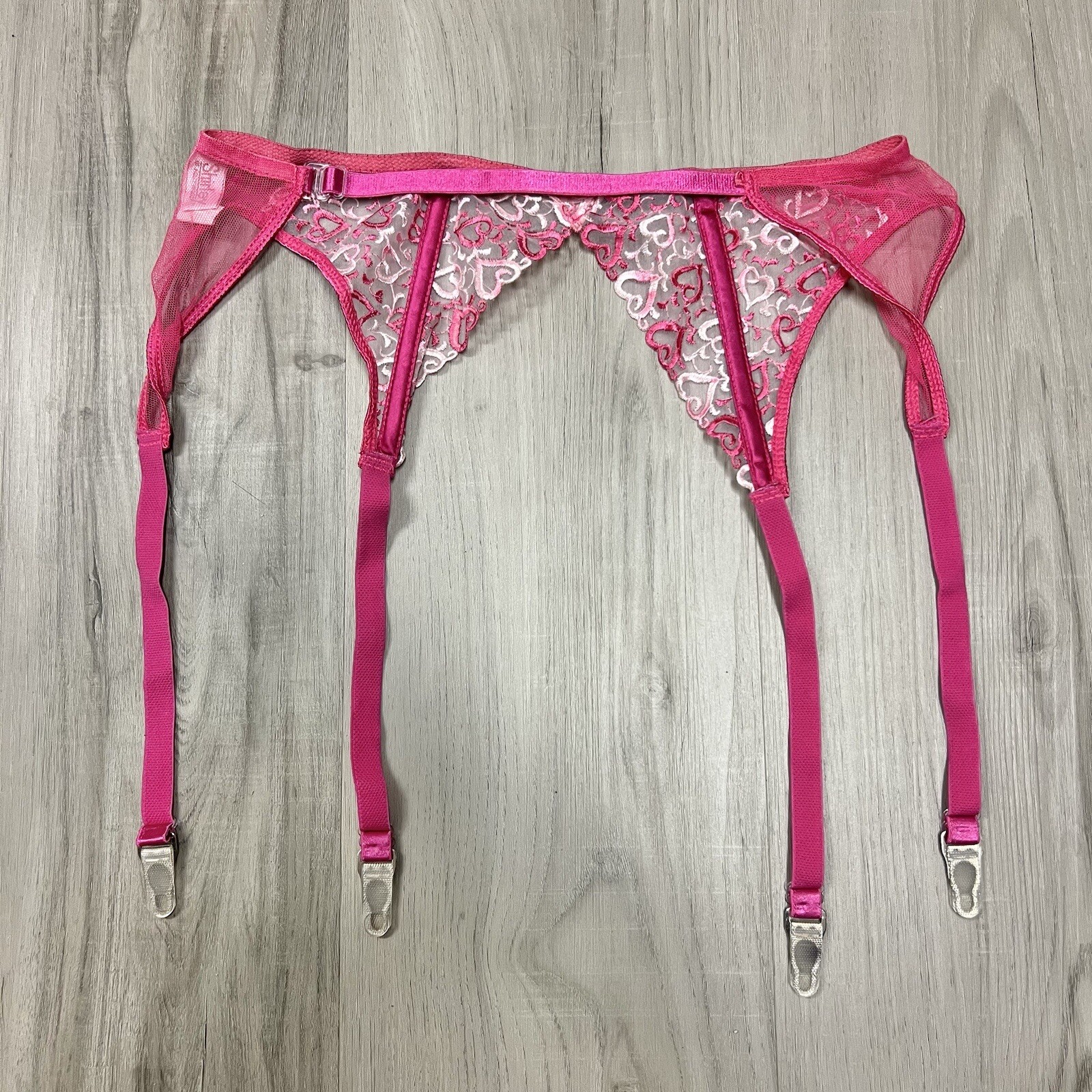 NWOT vintage Shirley of Hollywood pink white heart embroidered garter belt sz OS