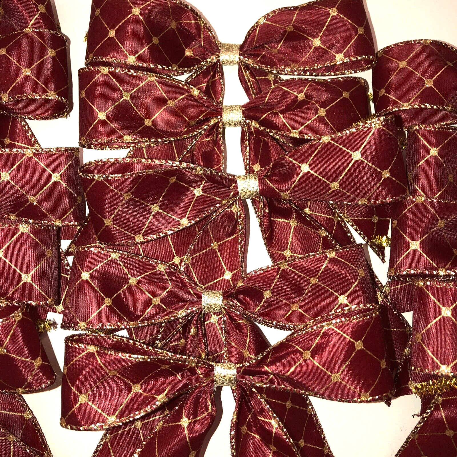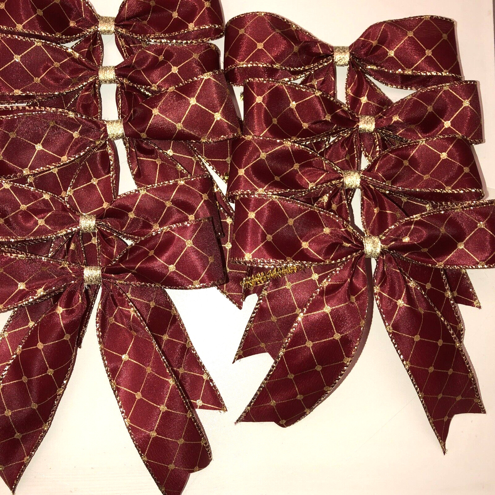 как выглядит Christmas Bows Dark Red and Gold Large 6" x 6" Set of 12 Handmade New фото