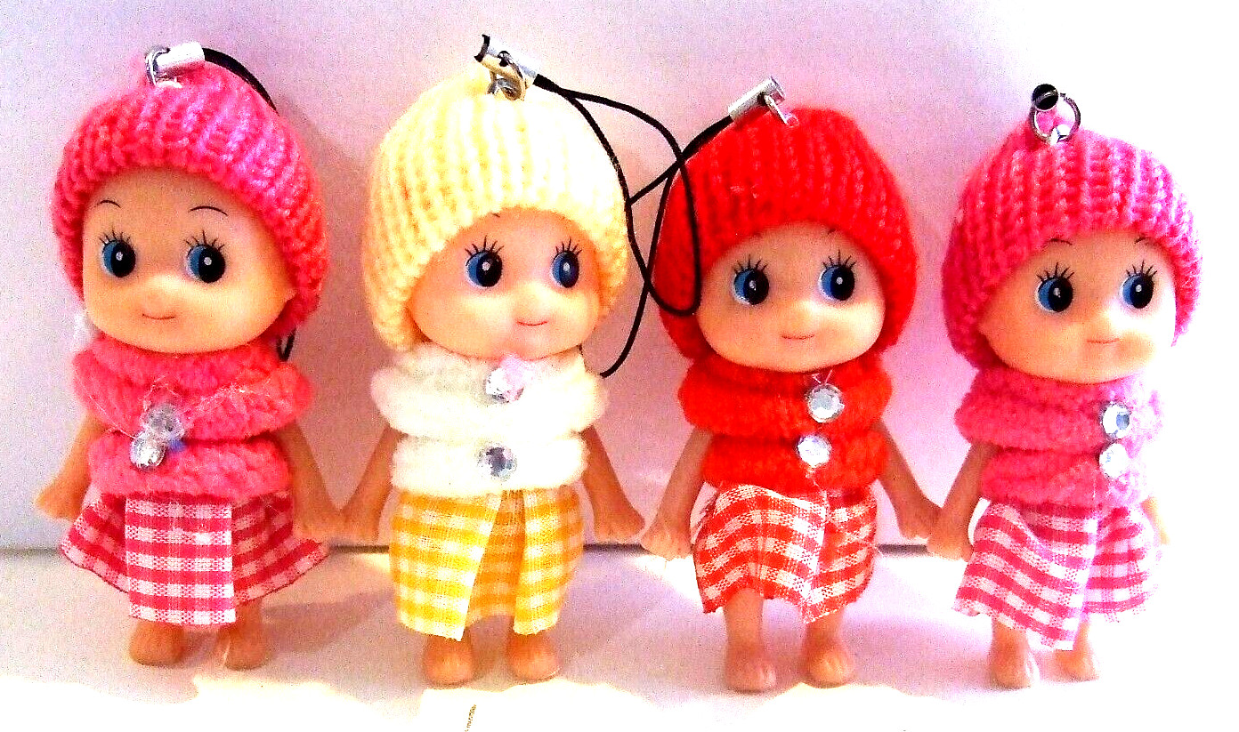 Lot of 4 Plastic Dolls For Phone, Purse, Backpack Charm Strap NWOT 3