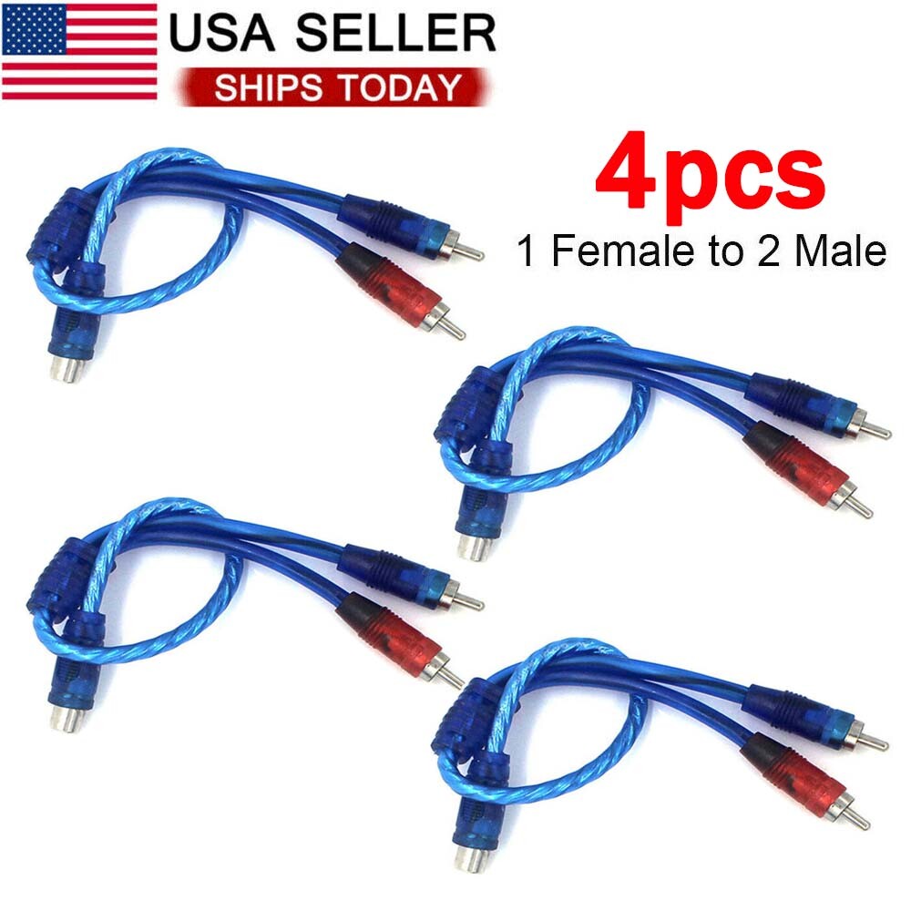 USA 4Pcs RCA Y Splitter Audio Jack Cable Adapter 1 Female to 2 Male Connector