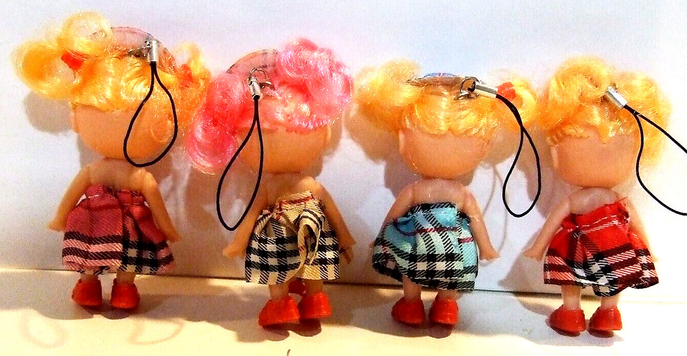 Lot of 4 Plastic Dolls For Phone, Purse, Backpack Charm Strap - NWOT 30