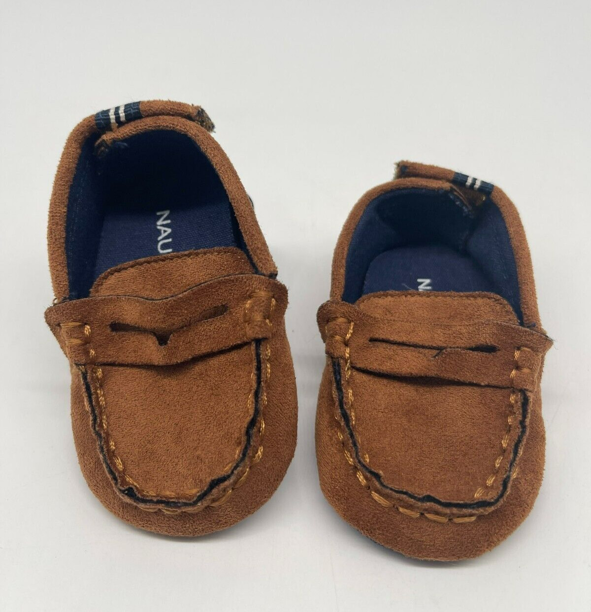 как выглядит Baby/Infant Nautica Leather Shoes Moccasins Size 1 Slip-on Adjustable back NWOT фото