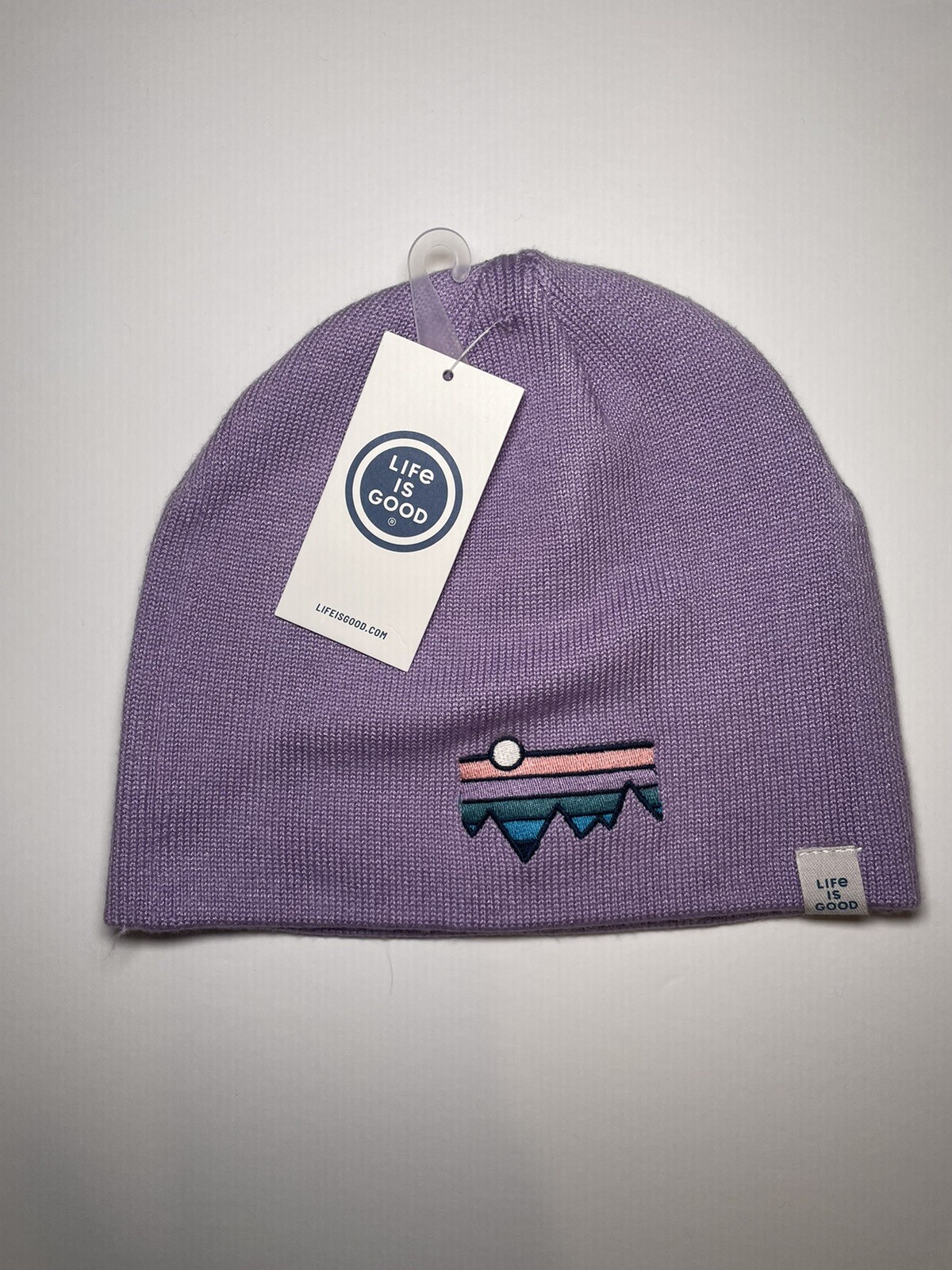 LIFE IS GOOD Embroidery Oval Beanie Knit stretch Hat One Size Lavender - NWT