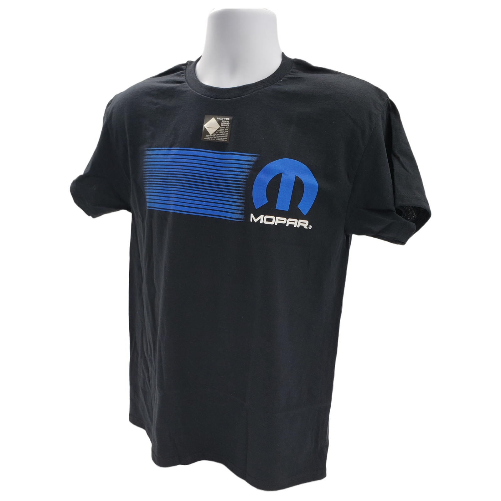 как выглядит Black T-Shirt - Mopar "M" w/ Blue Horizontal Stripe Logo / Emblem Licensed фото