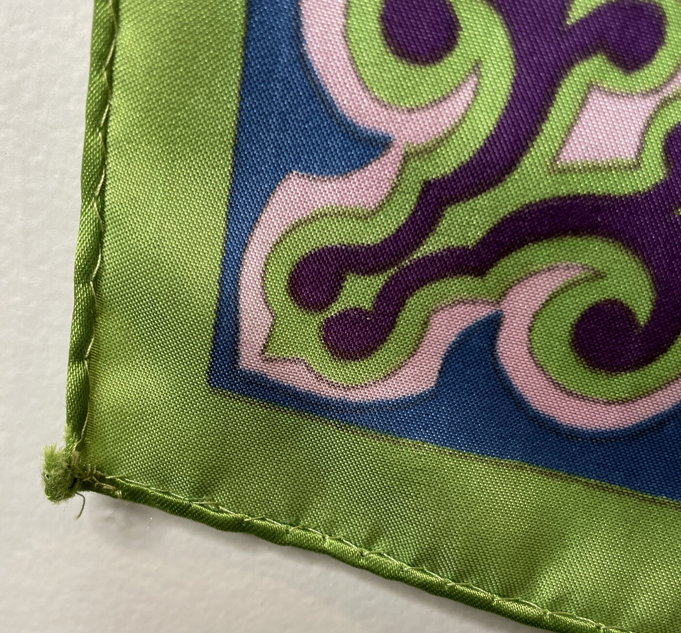 как выглядит VTG 1960-70s Green Purple Blue Geometric Paisley Acetate Scarf Made Japan 26.5 фото