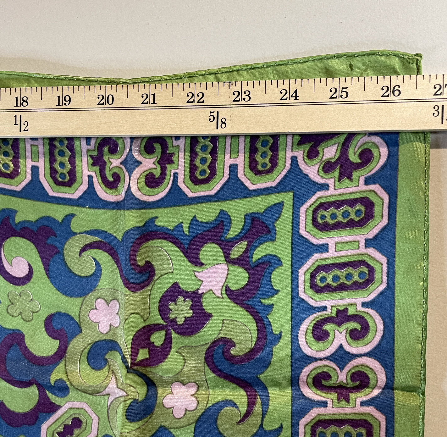VTG 1960-70's Green Purple Blue Geometric Paisley Acetate Scarf Made Japan 26.5