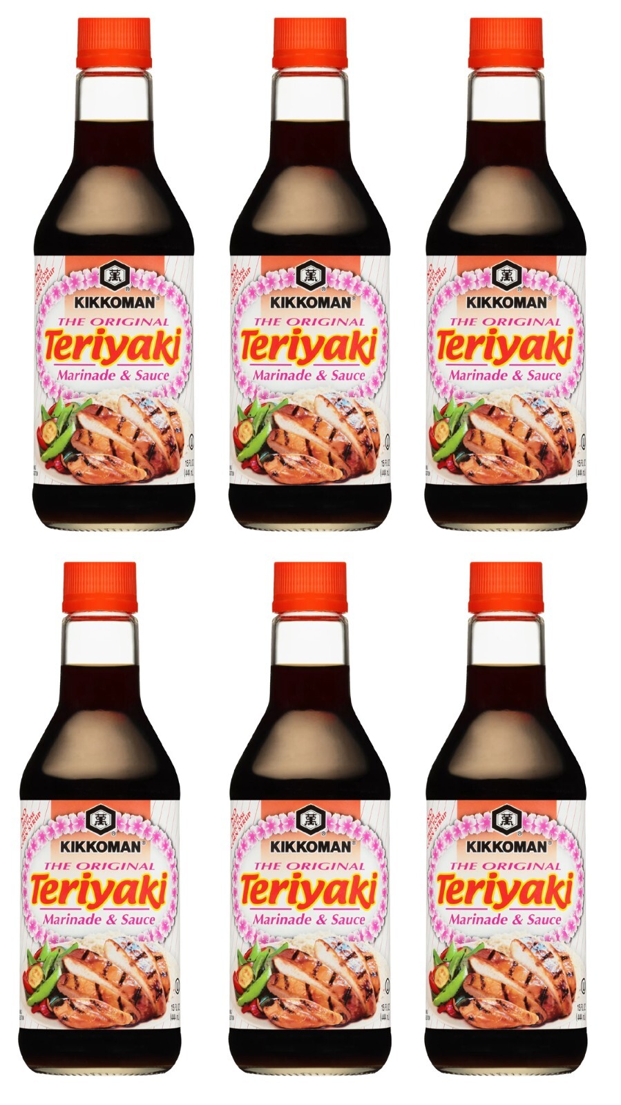 6 Bottle Kikkoman Teriyaki Marinade Sauce Brewed Soy Sauce Wine Spices 15 oz