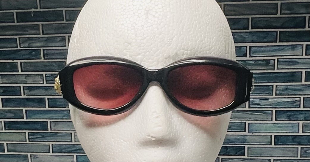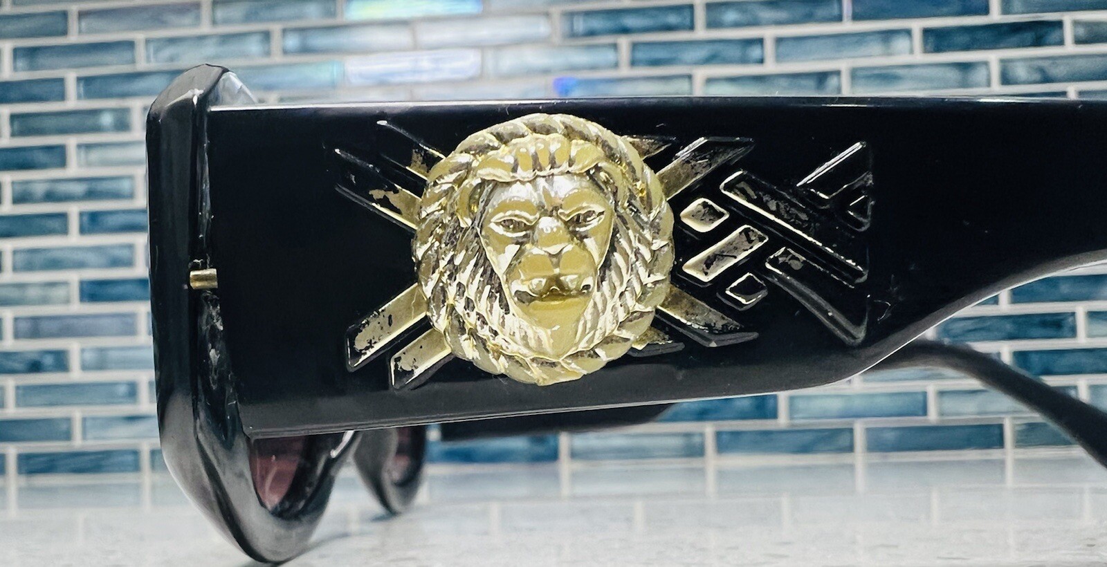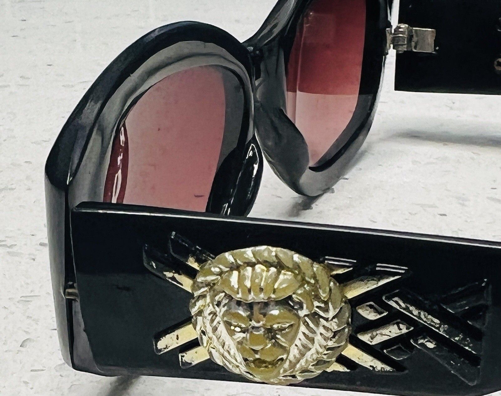 как выглядит designer sunglasses lion head logo black gold red lens фото