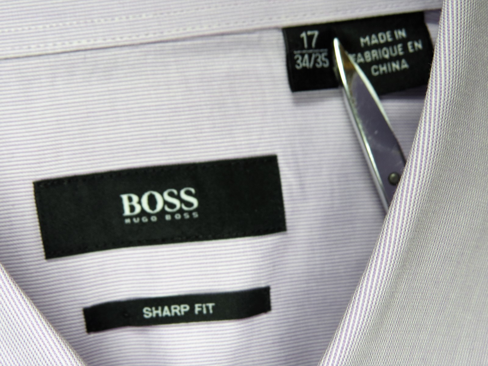 как выглядит HUGO BOSS Miles Mens Dress Shirt 17 L Purple Cotton Designer Office фото