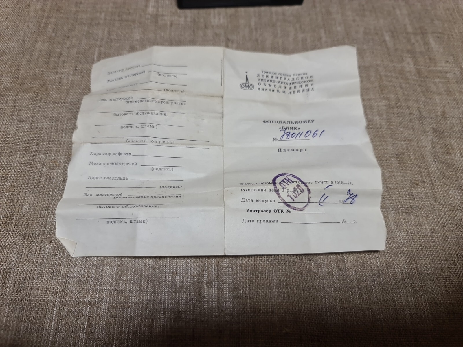 Тип: Blik LOMO USSR