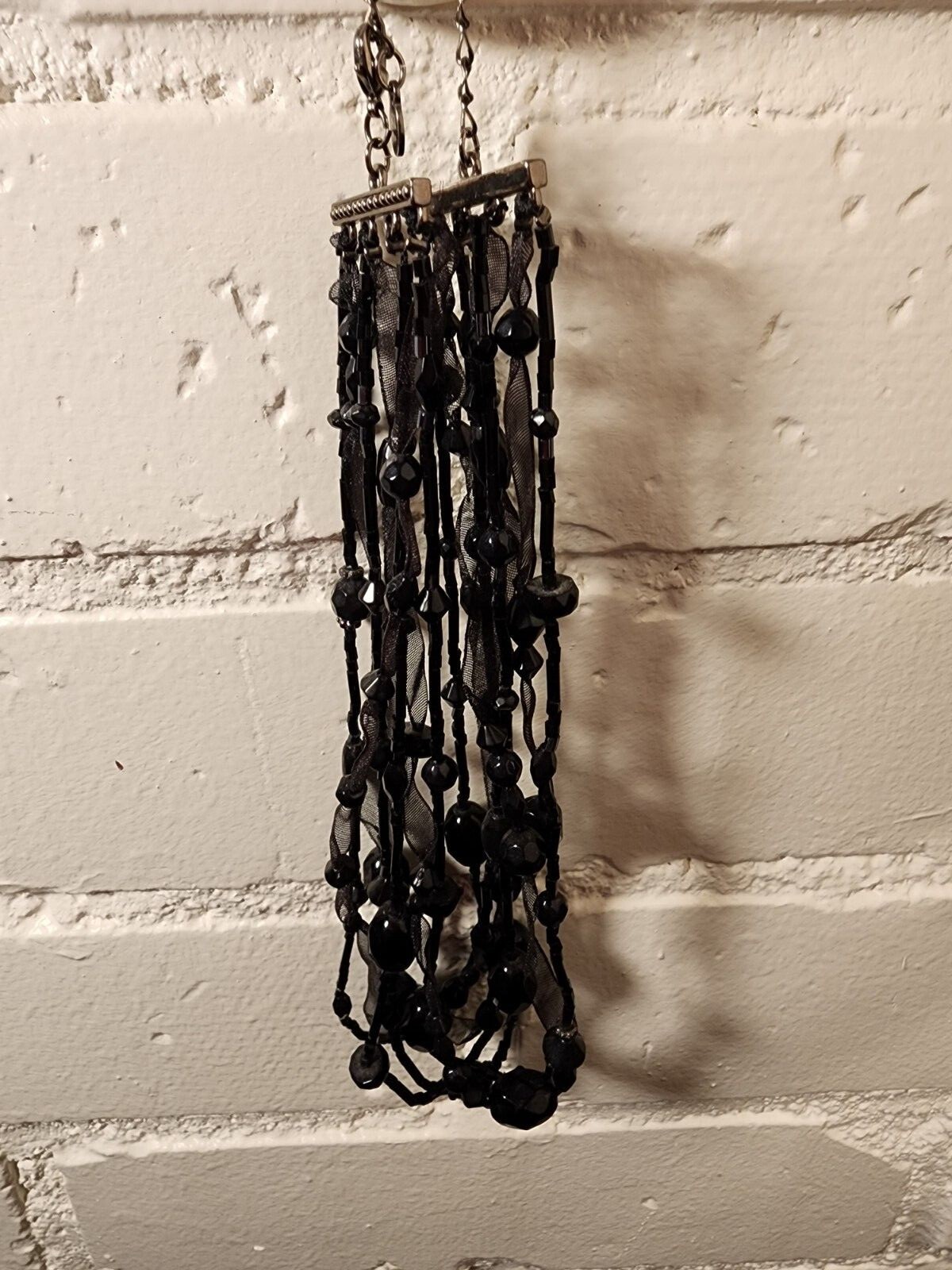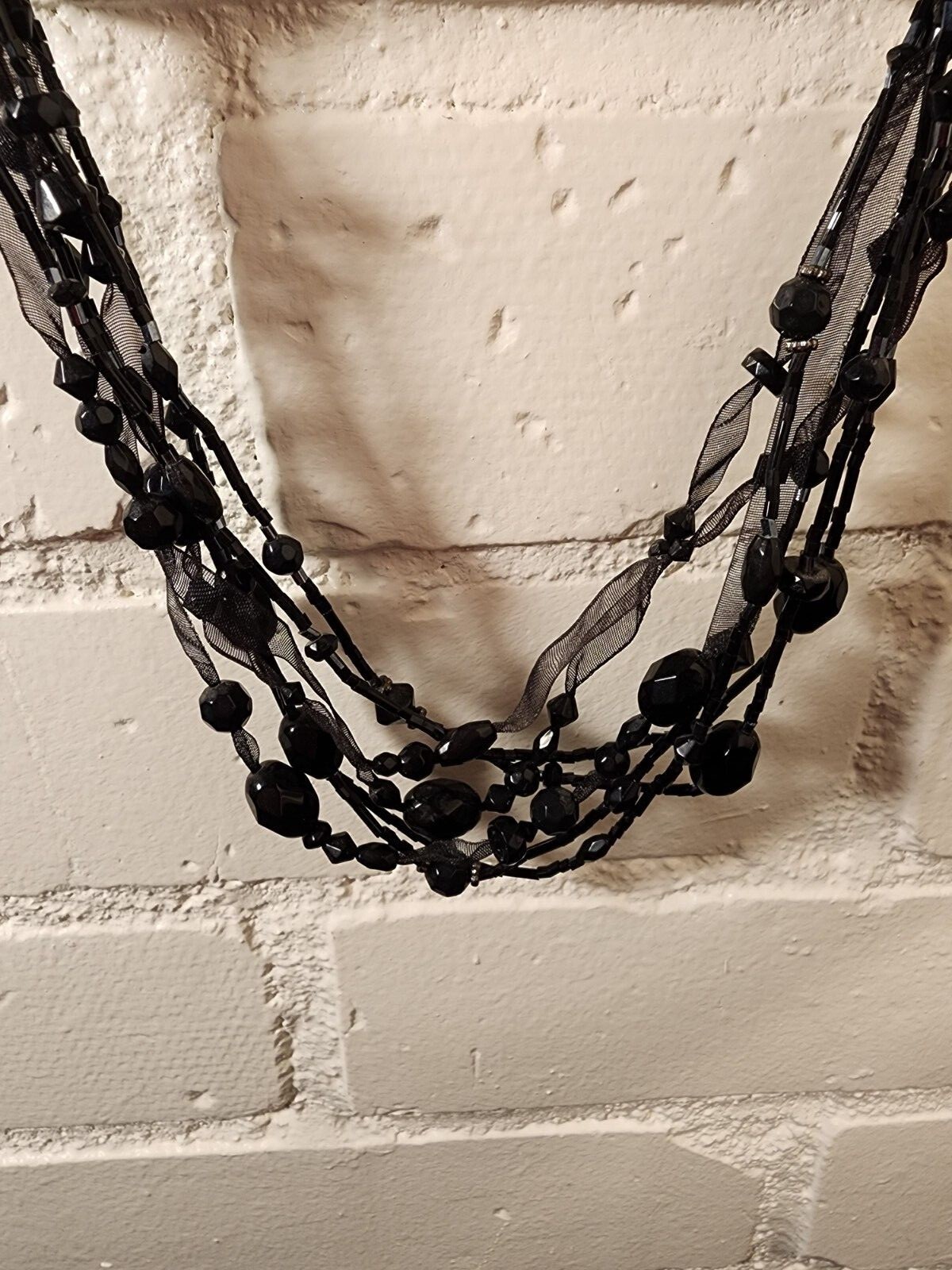 BLACK BEAD ORGANZA RIBBON GOTH VICTORIAN STYLE CHOKER HALLOWEEN COSTUME NECKLACE