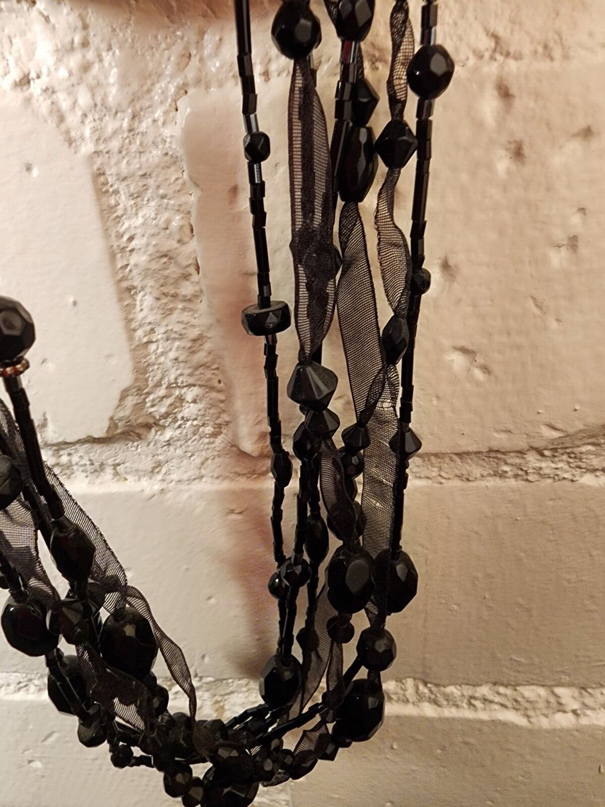 как выглядит BLACK BEAD ORGANZA RIBBON GOTH VICTORIAN STYLE CHOKER HALLOWEEN COSTUME NECKLACE фото