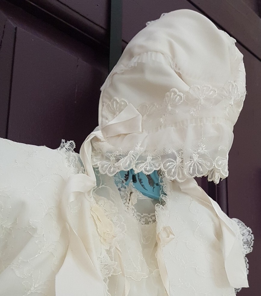 как выглядит 4 PC LONG VINTAGE BABY GIRL CHRISTENING BAPTISM GOWN DRESS LACE SLIP JACKET HAT фото