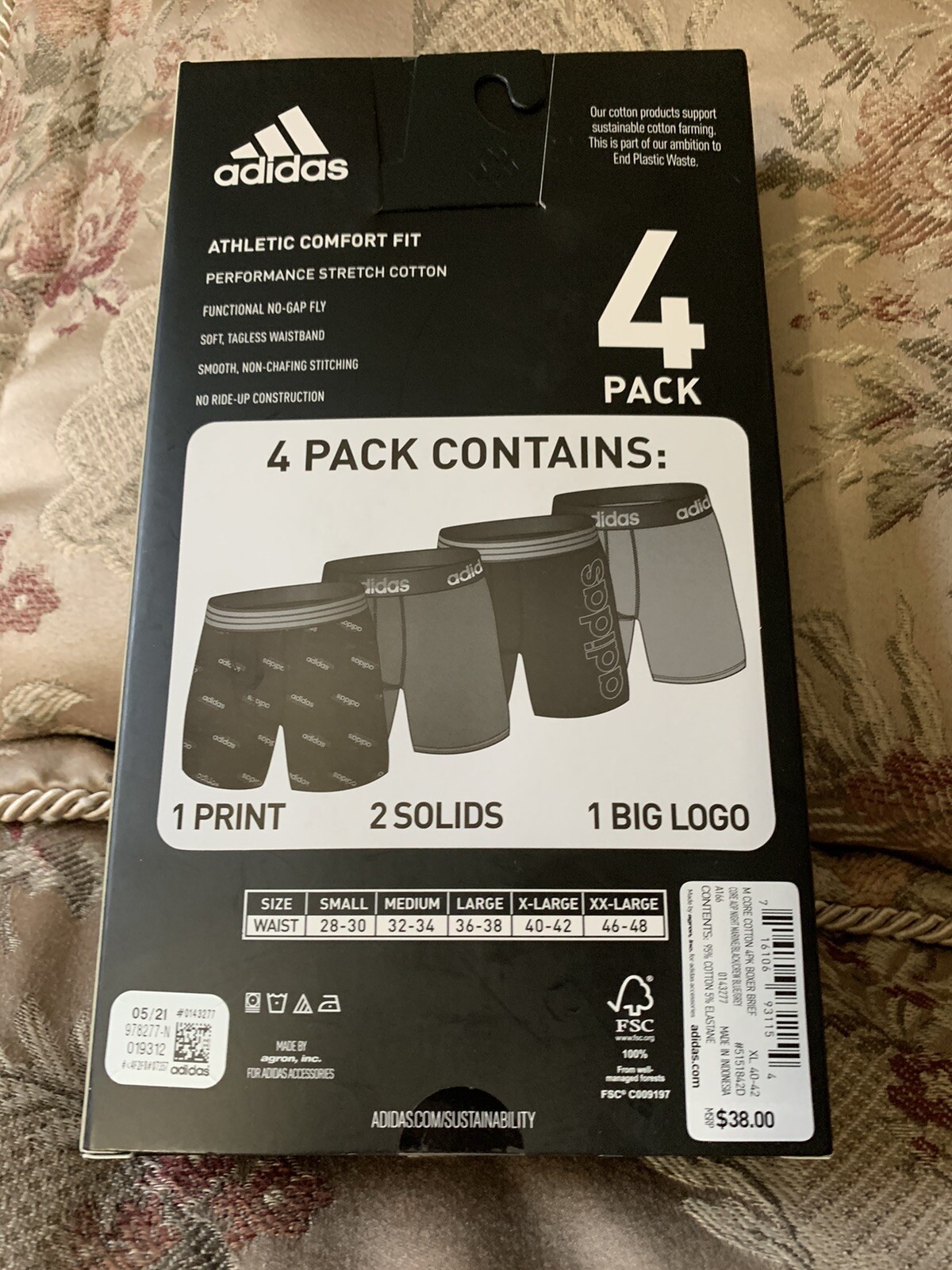 как выглядит New with tag Men s adidas 4- pack performance cotton stretch boxer briefs Sz XL фото