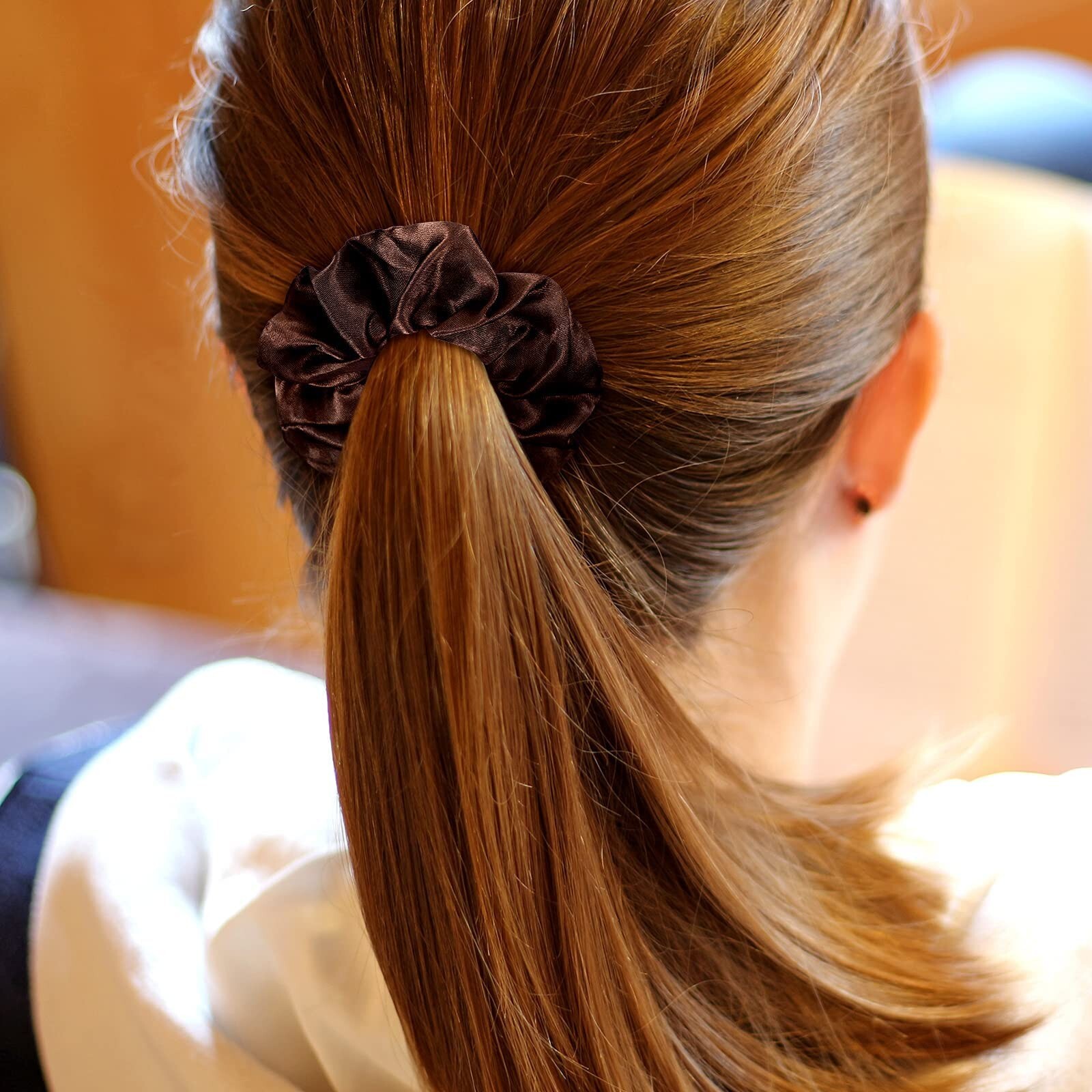 24 Pieces Satin Hair Scrunchies Silky Elastic Hair Bands Skinny Solid Hair Ti...