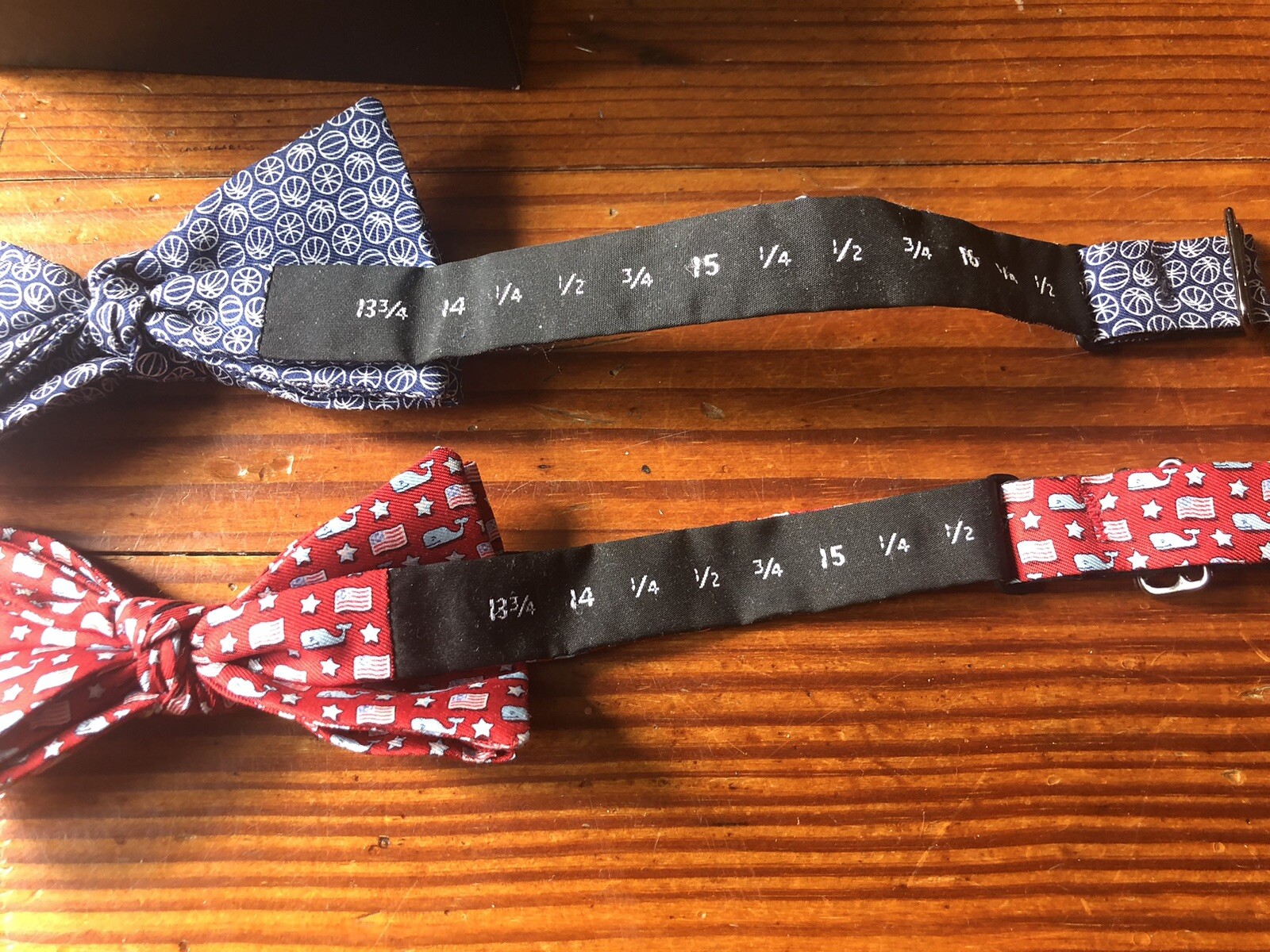 как выглядит Vineyard Vines adjustable Bow ties - Lot of 2- Basketball, USA Flag Whales фото