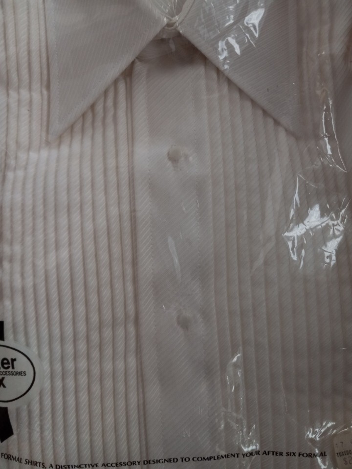 как выглядит Vintage After Six Mens White Pleated Tuxedo Dress Shirt - Size 16/35 NEW фото