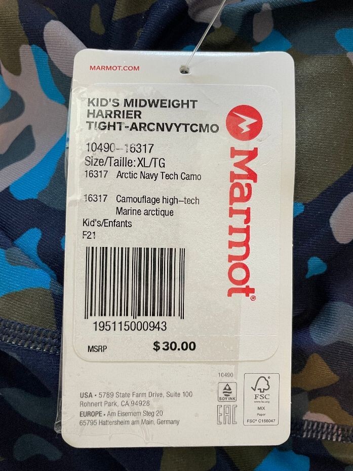 как выглядит NWT Marmot Boys Midweight Harrier Base Layer Bottoms Tights Size: XL фото