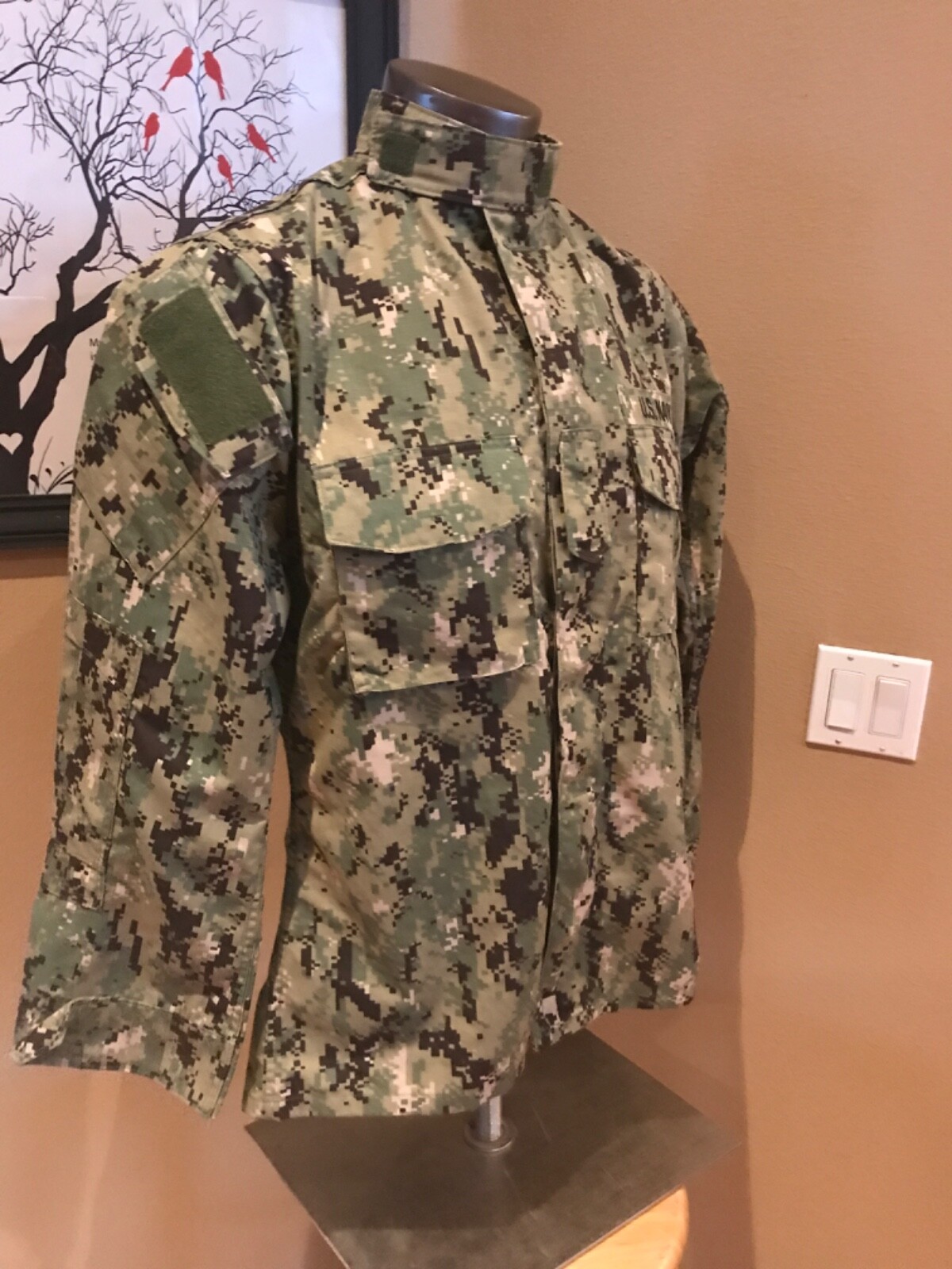 как выглядит US Navy USN Type III Working Uniform Blouse Jacket Size Medium Long Green Camo M фото