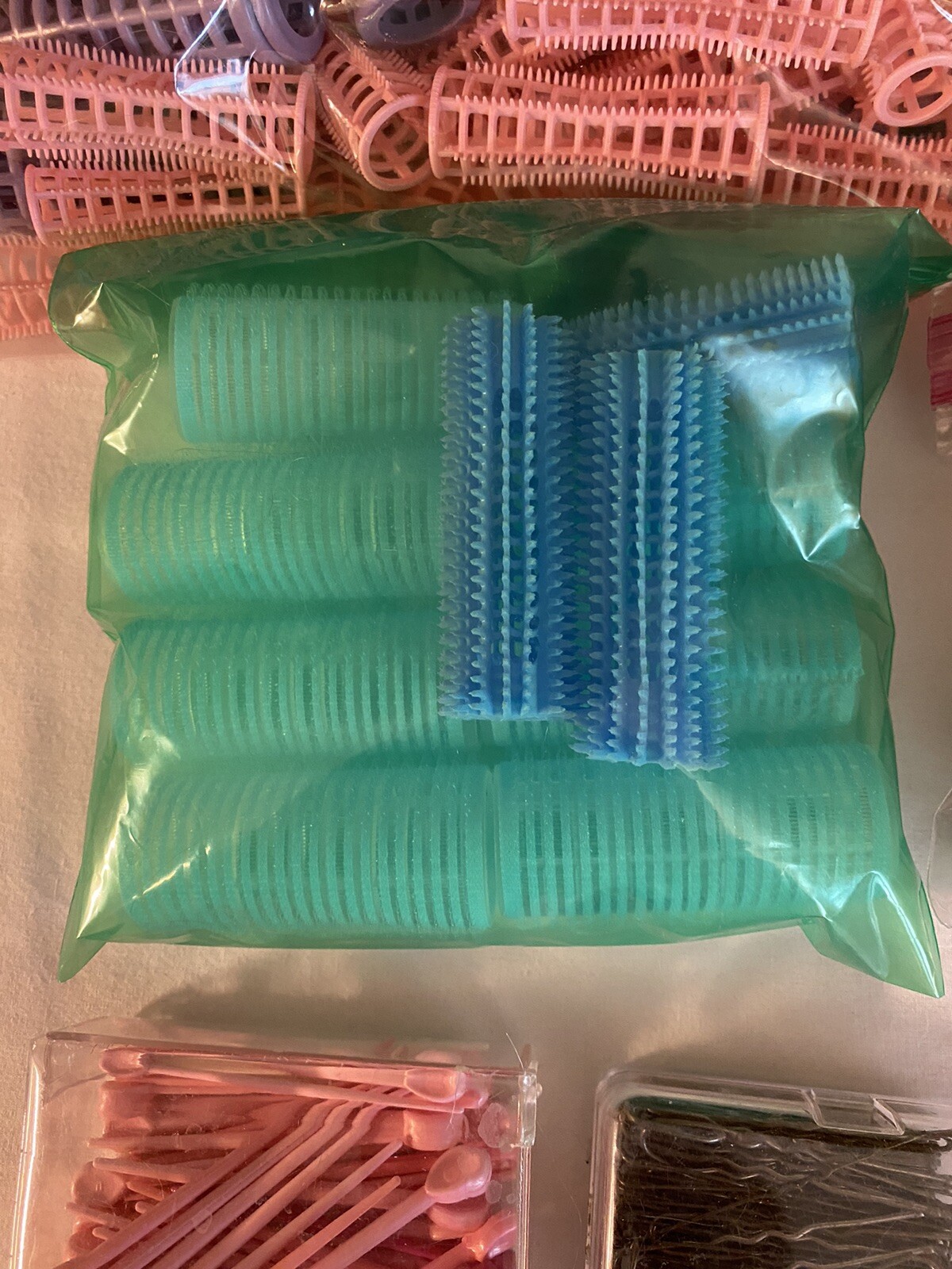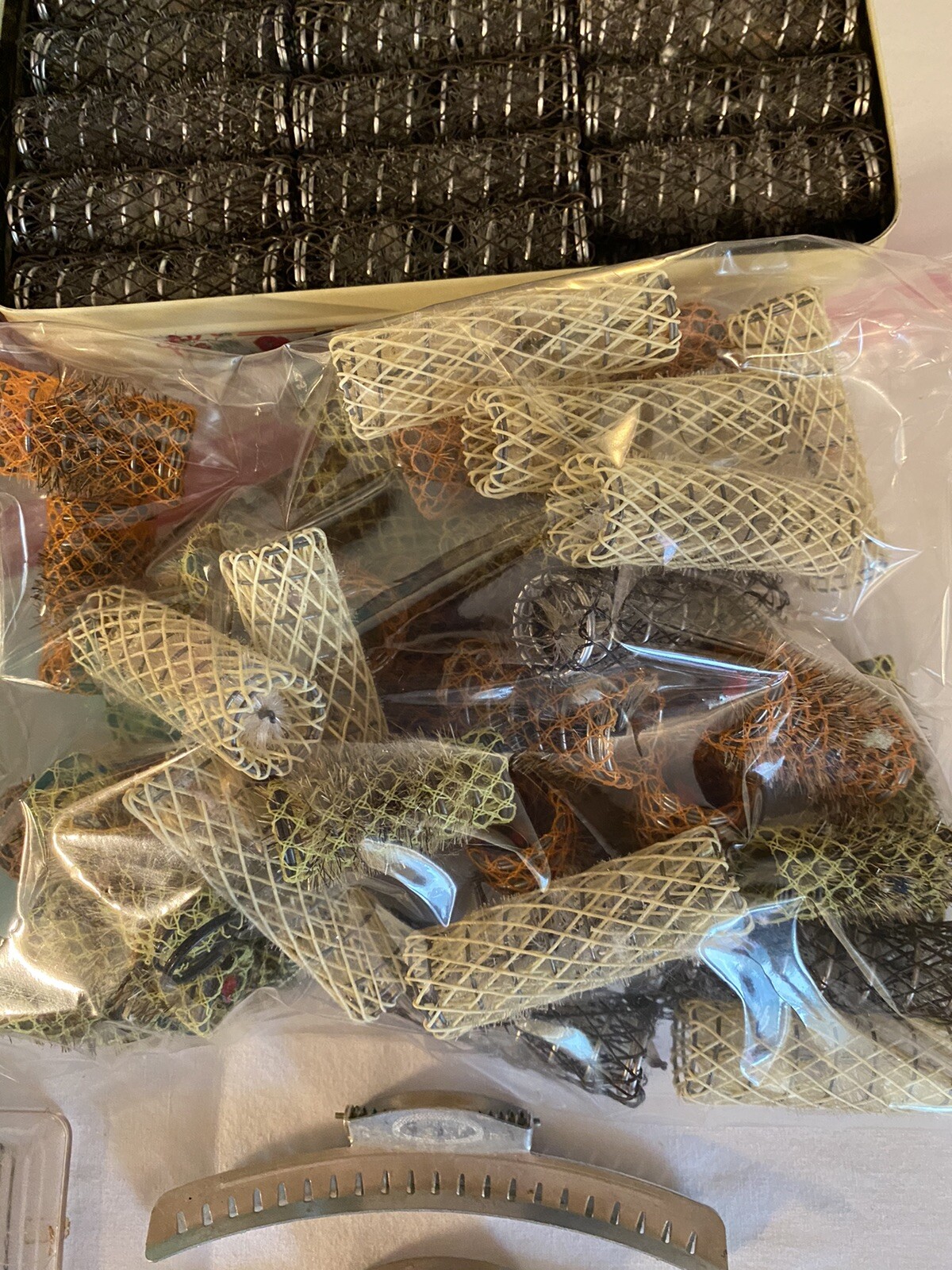 Lot Of Vintage Hair Curlers Various Sizes and Colors 2 Vintage Metal Clips