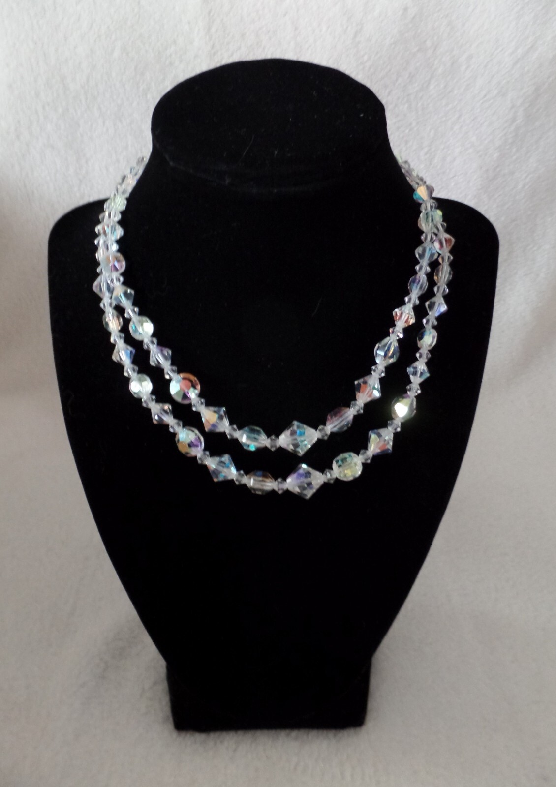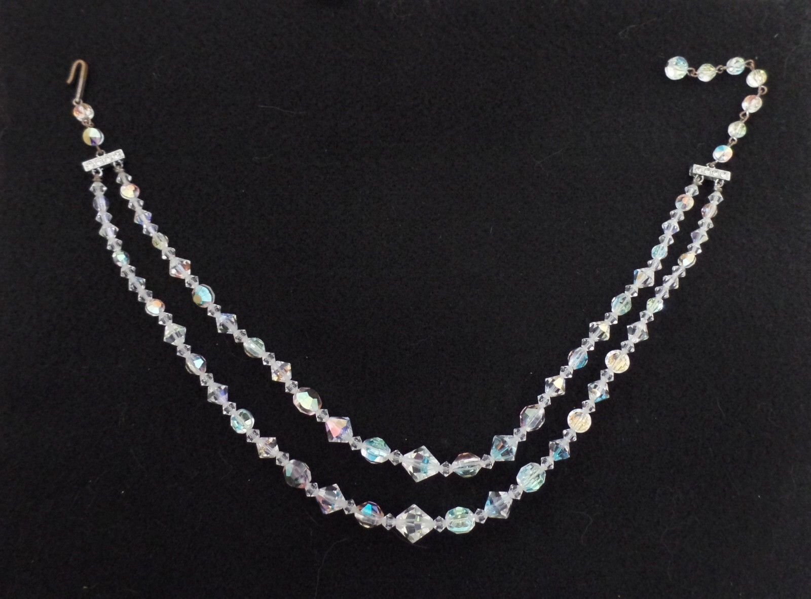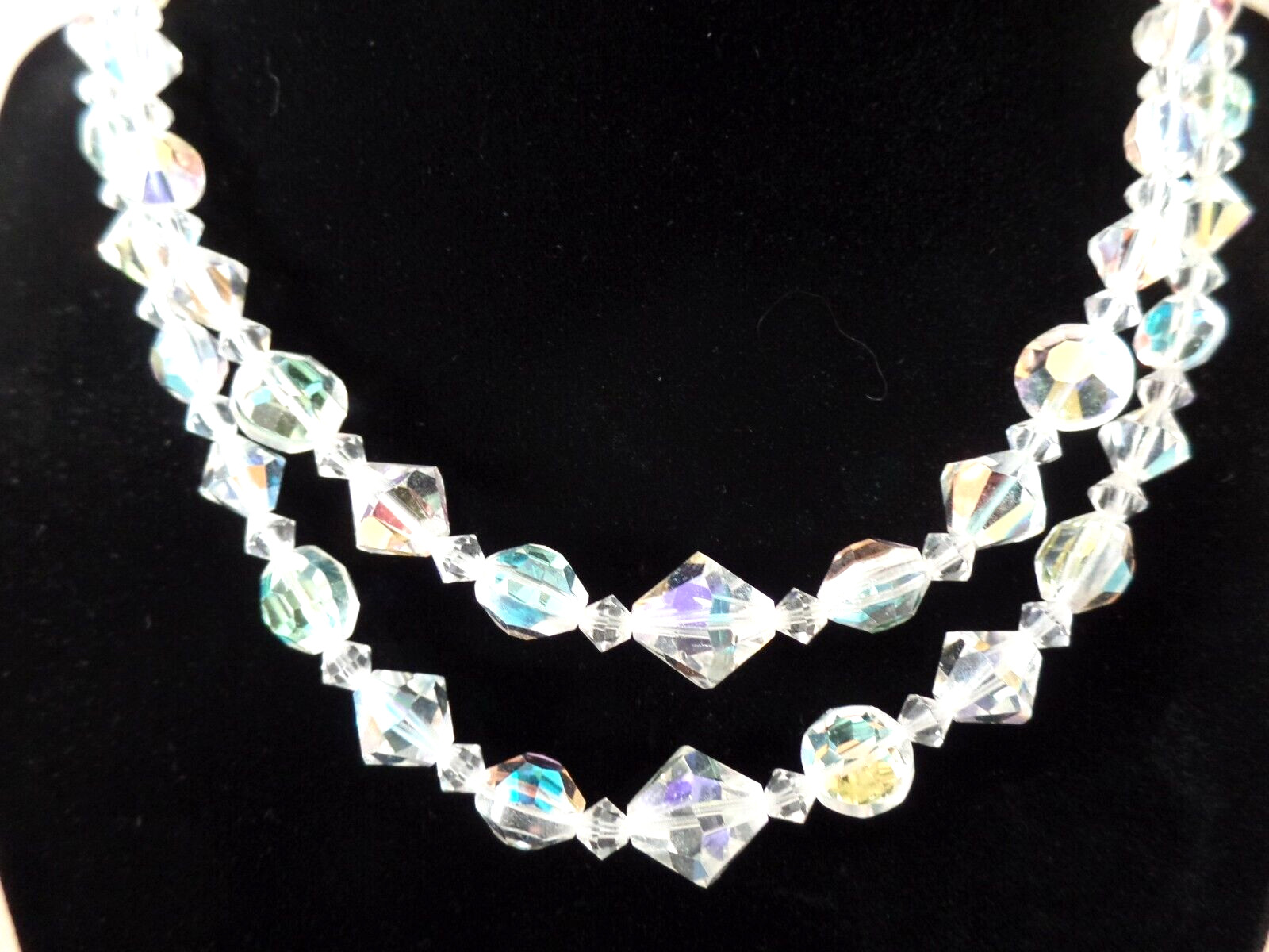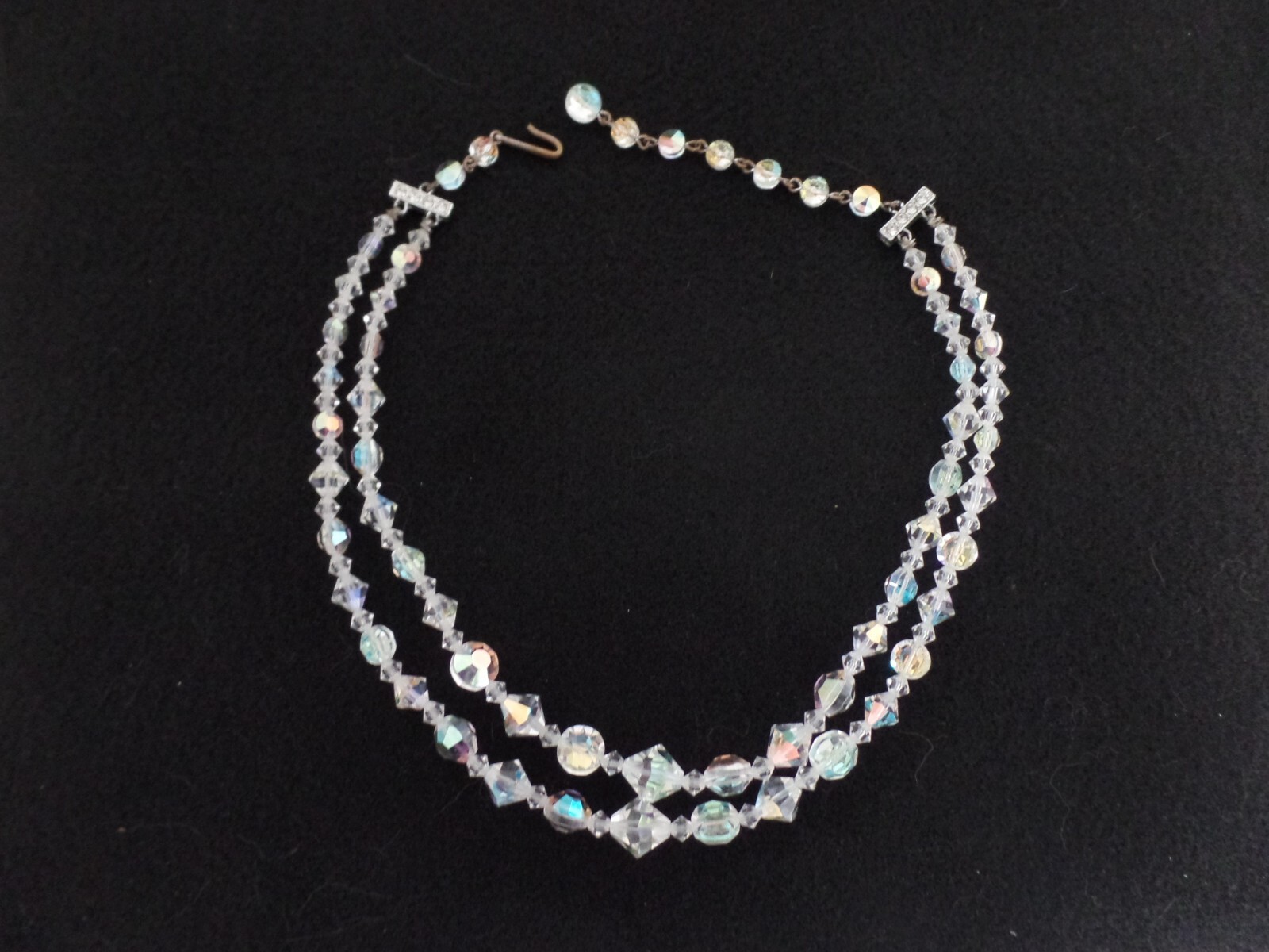 Crystal Aurora Borealis Double Strand Bead Choker Necklace Vintage