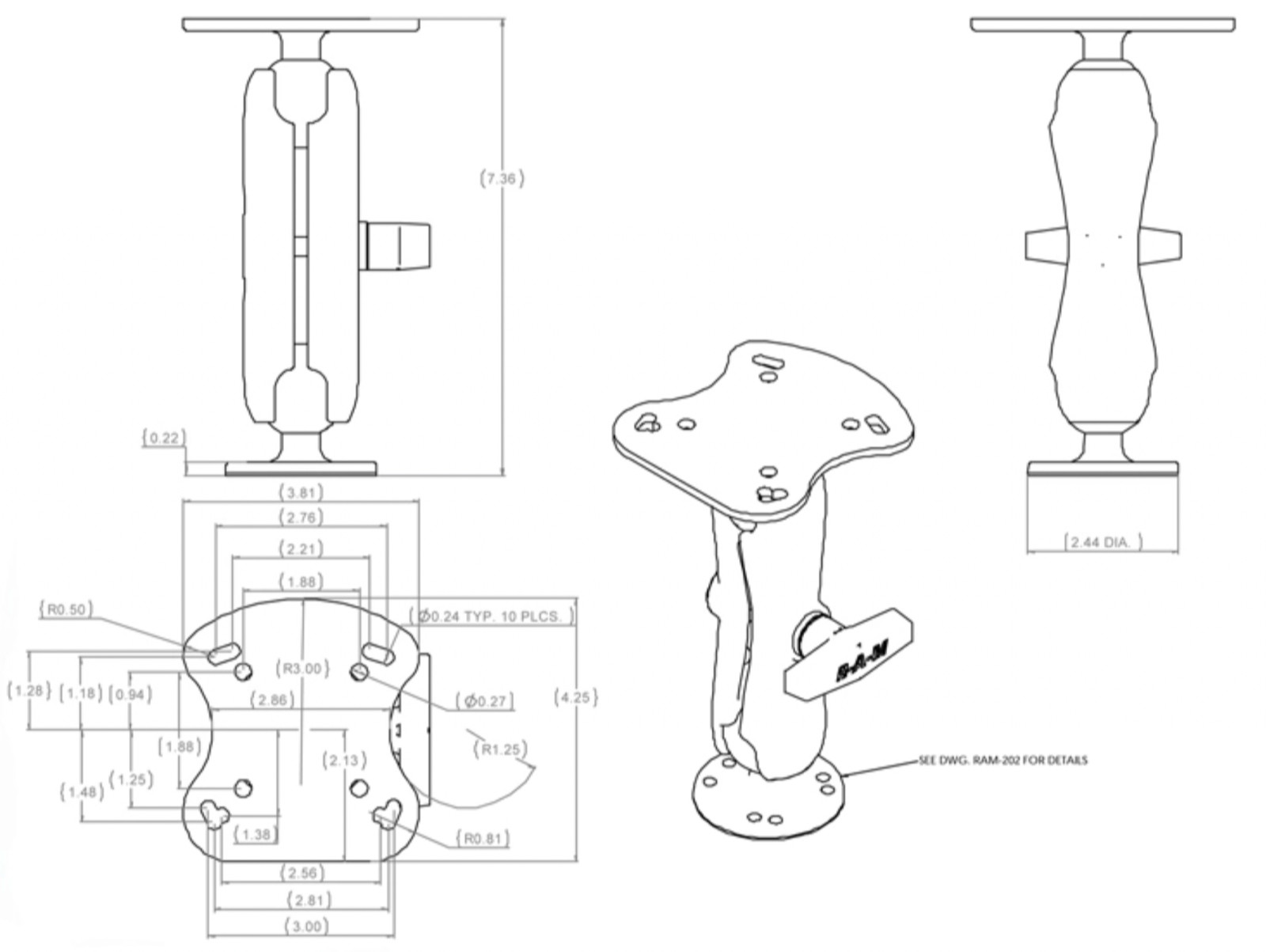 как выглядит RAM-107U RAM Mounts Fishfinder Mount for Humminbird Other Devices SEE LIST фото