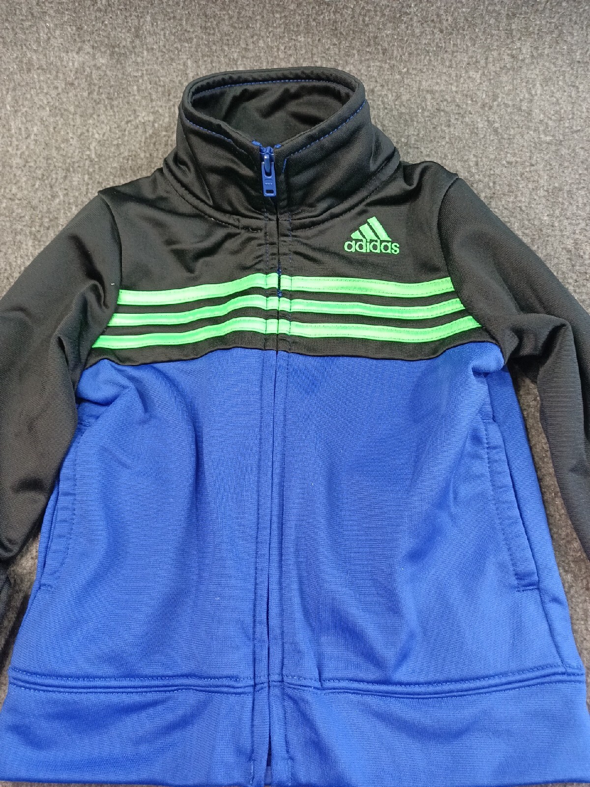 Boys Adidas Black with Green Stripes Track Suite Jacket Pants Size 18M
