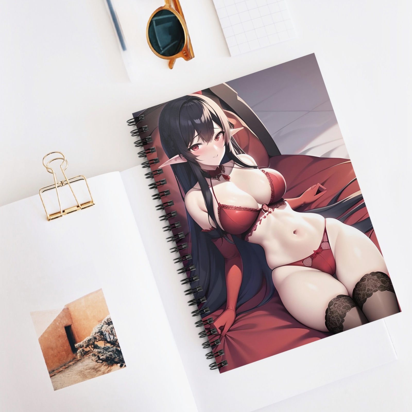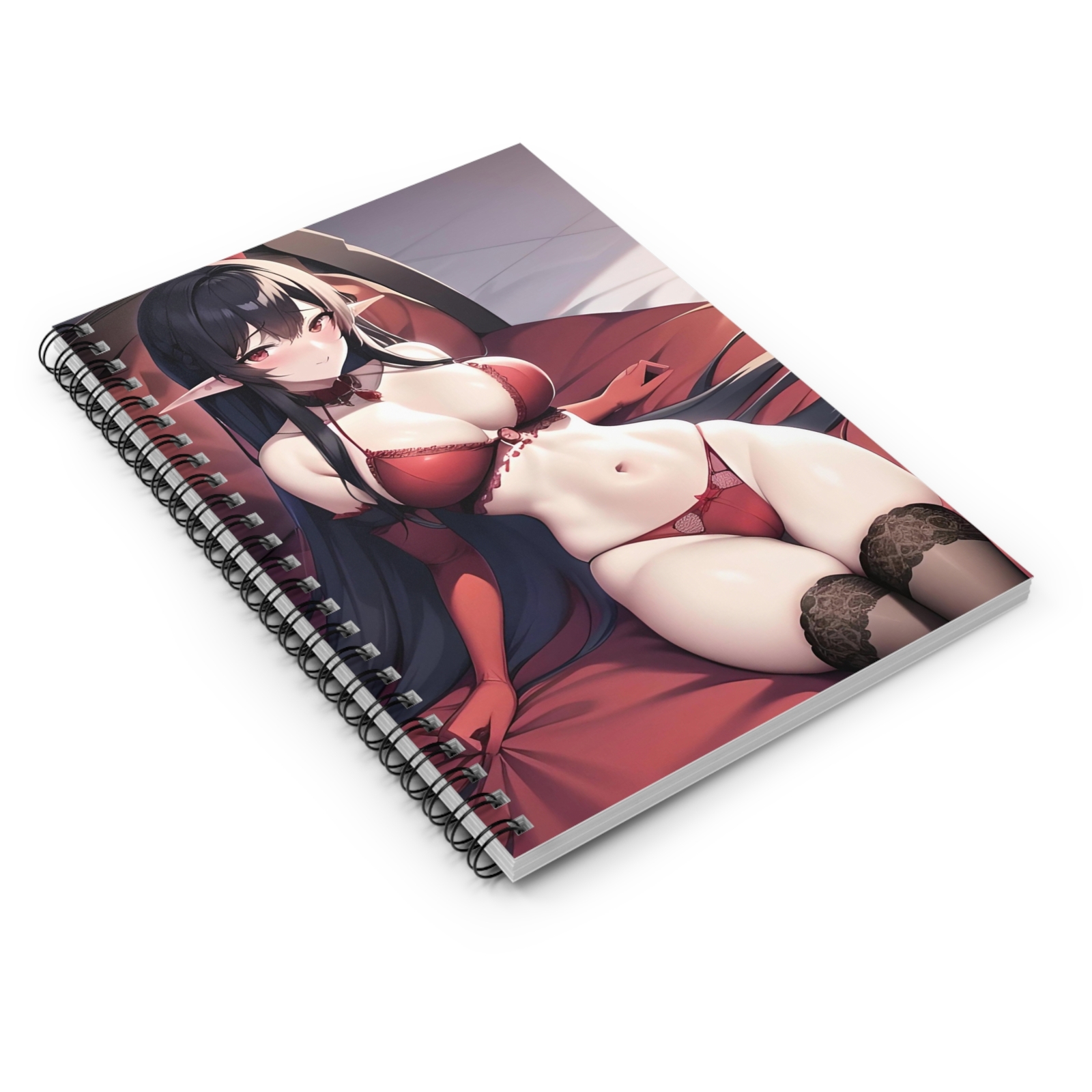 Anime Elf Girl in Red Satin Lingerie Spiral Notebook - Ruled Line