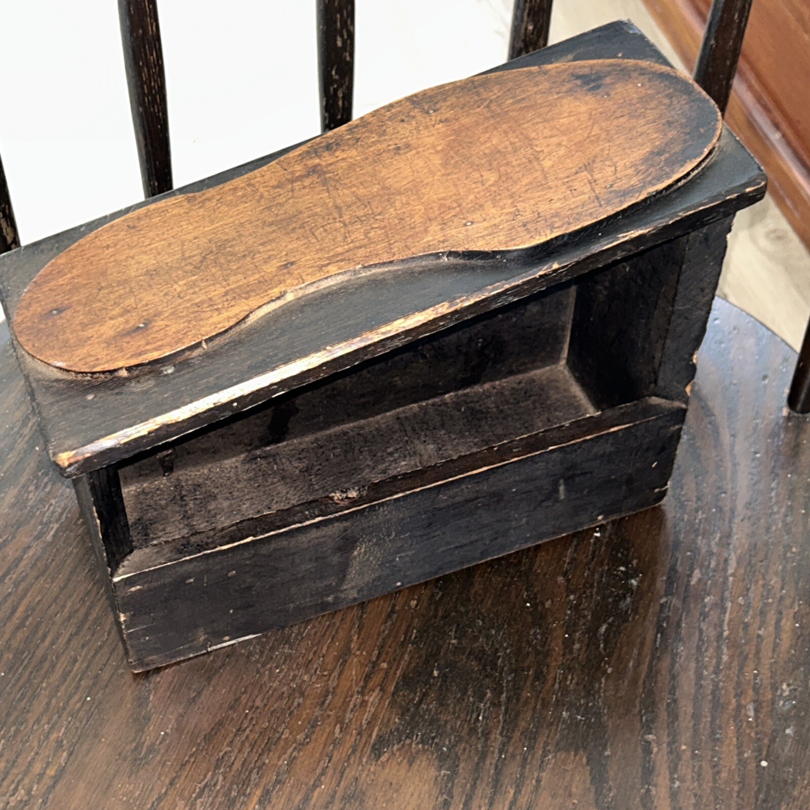 Vintage Wooden Shoe Shine Box Handmade Folk Art Primitive Farmhouse Country