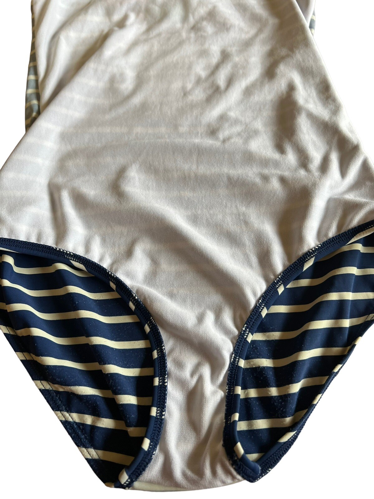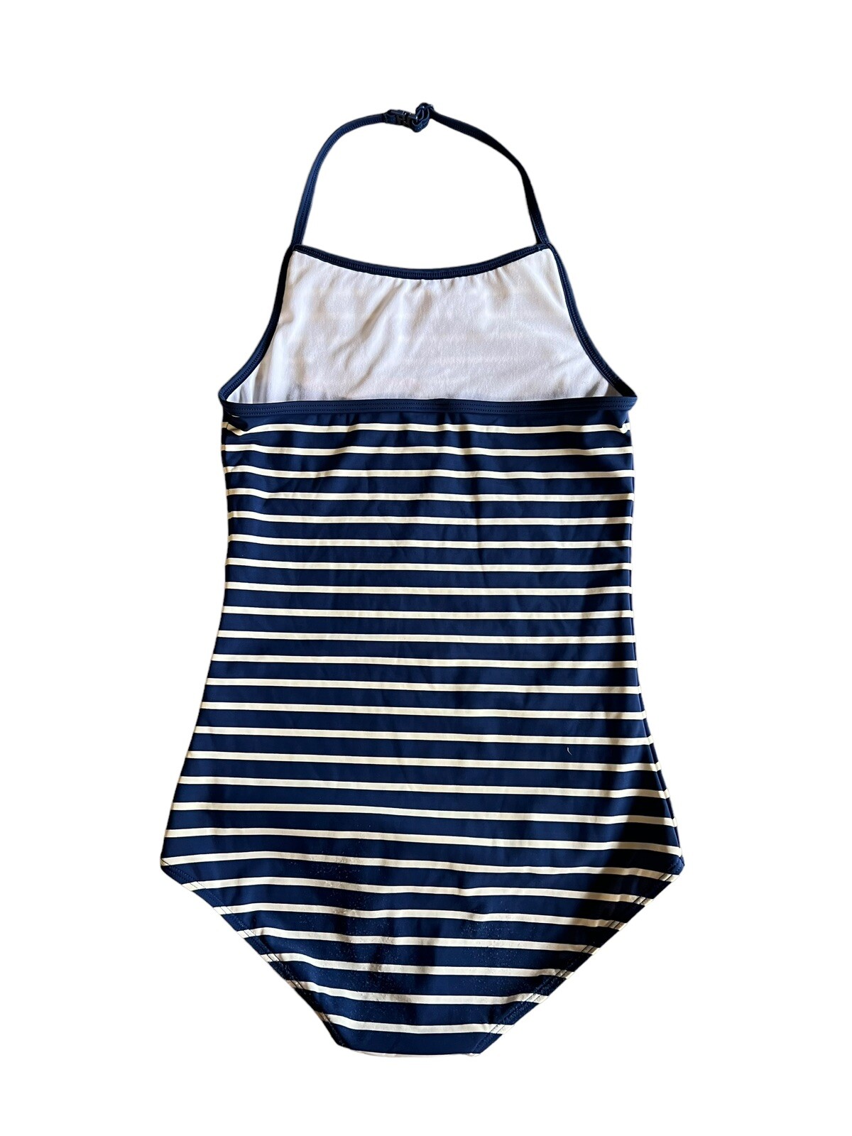 BODEN Color Change Mermaid Sequin Swimsuit Deep Sea Blue/Ivory Sz 11-12 Stripes