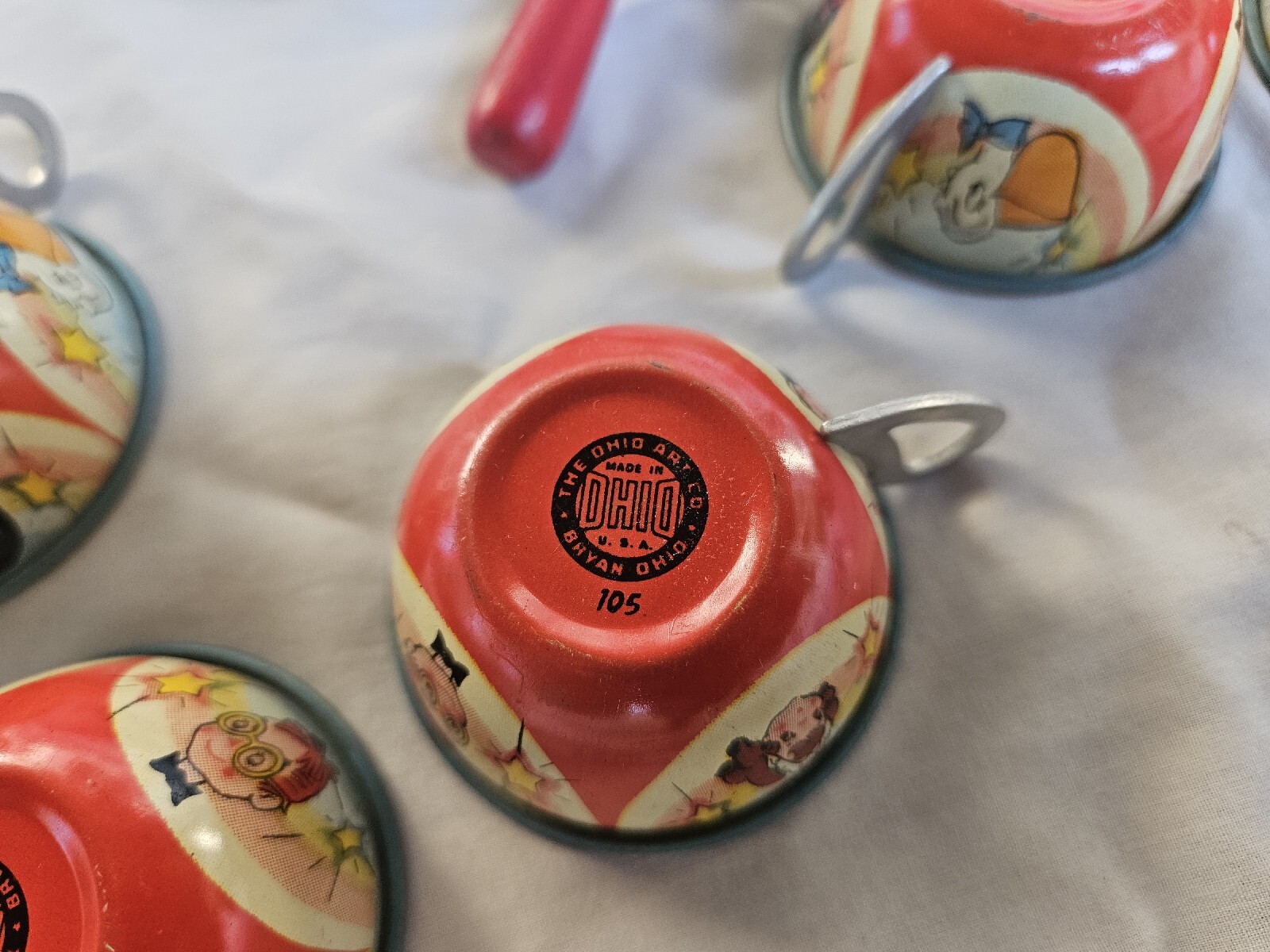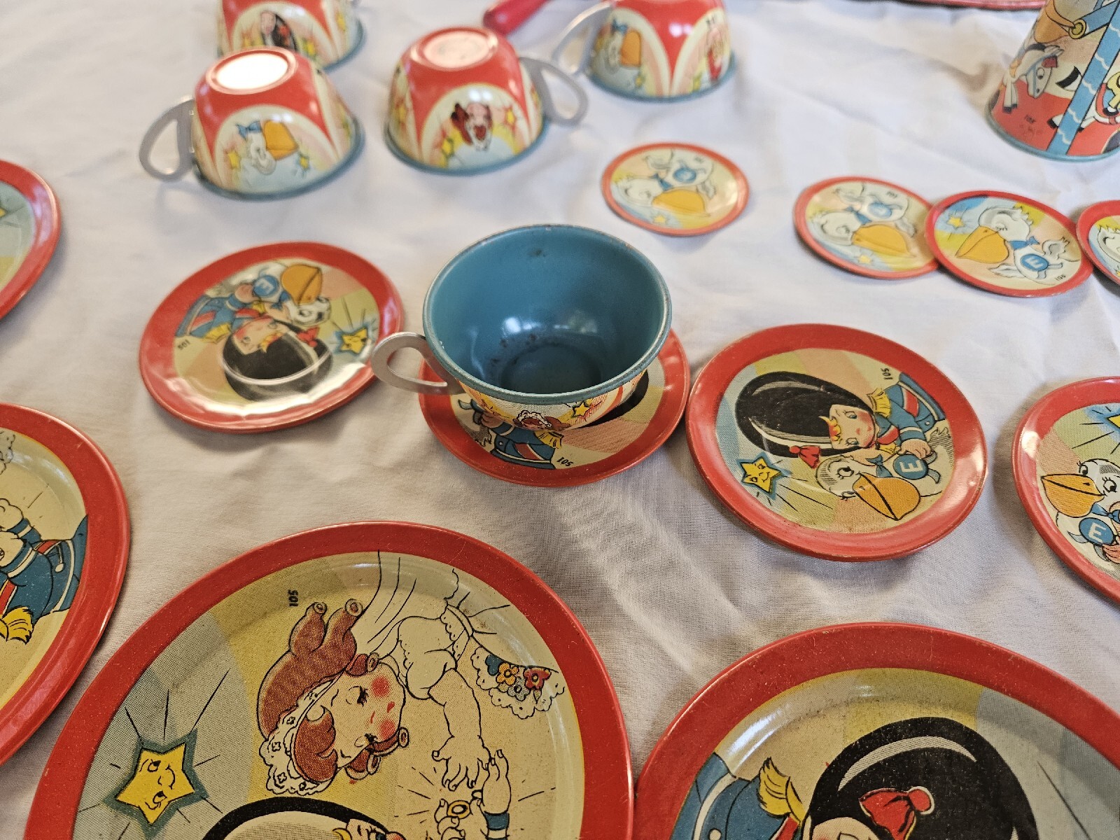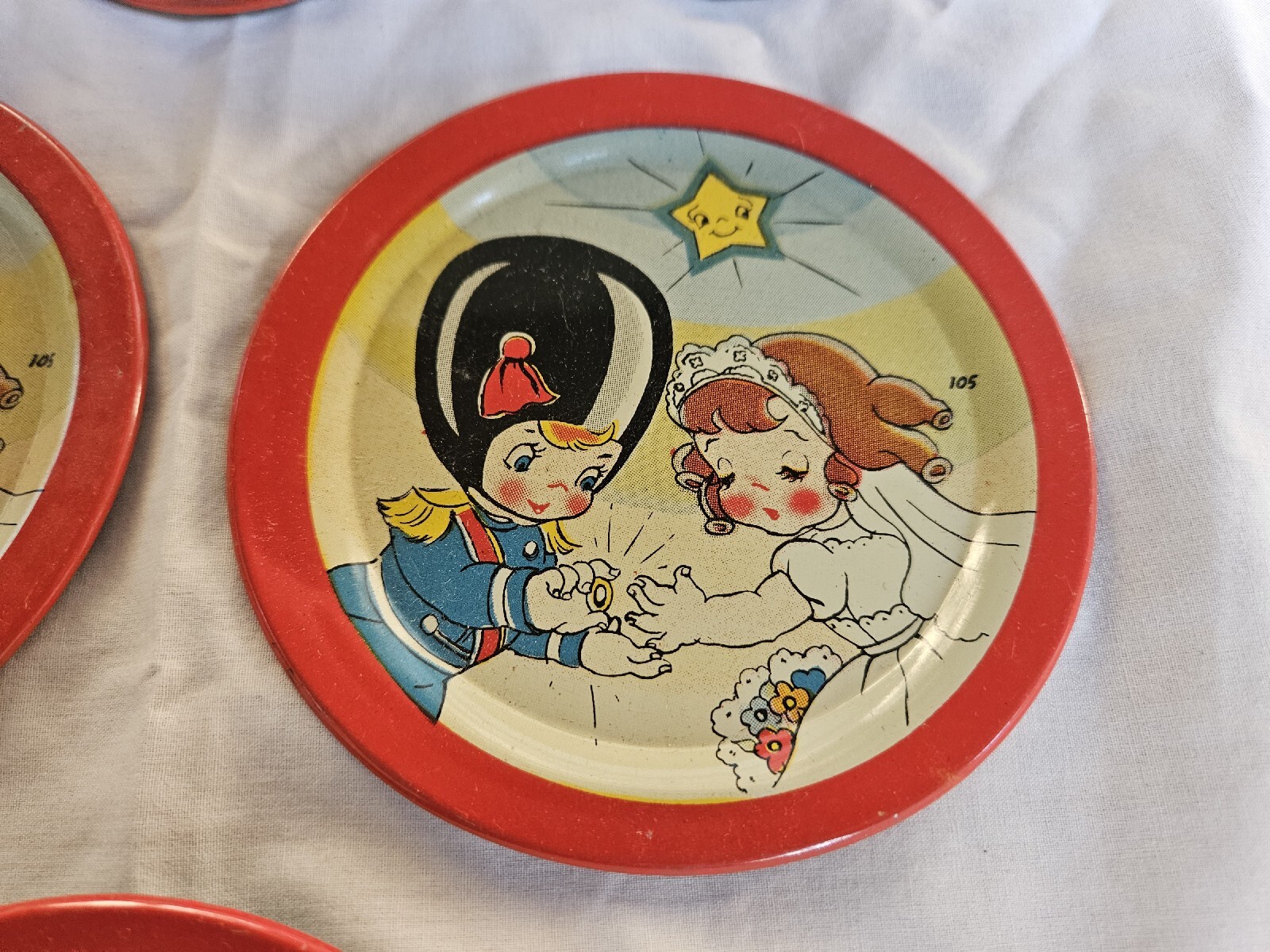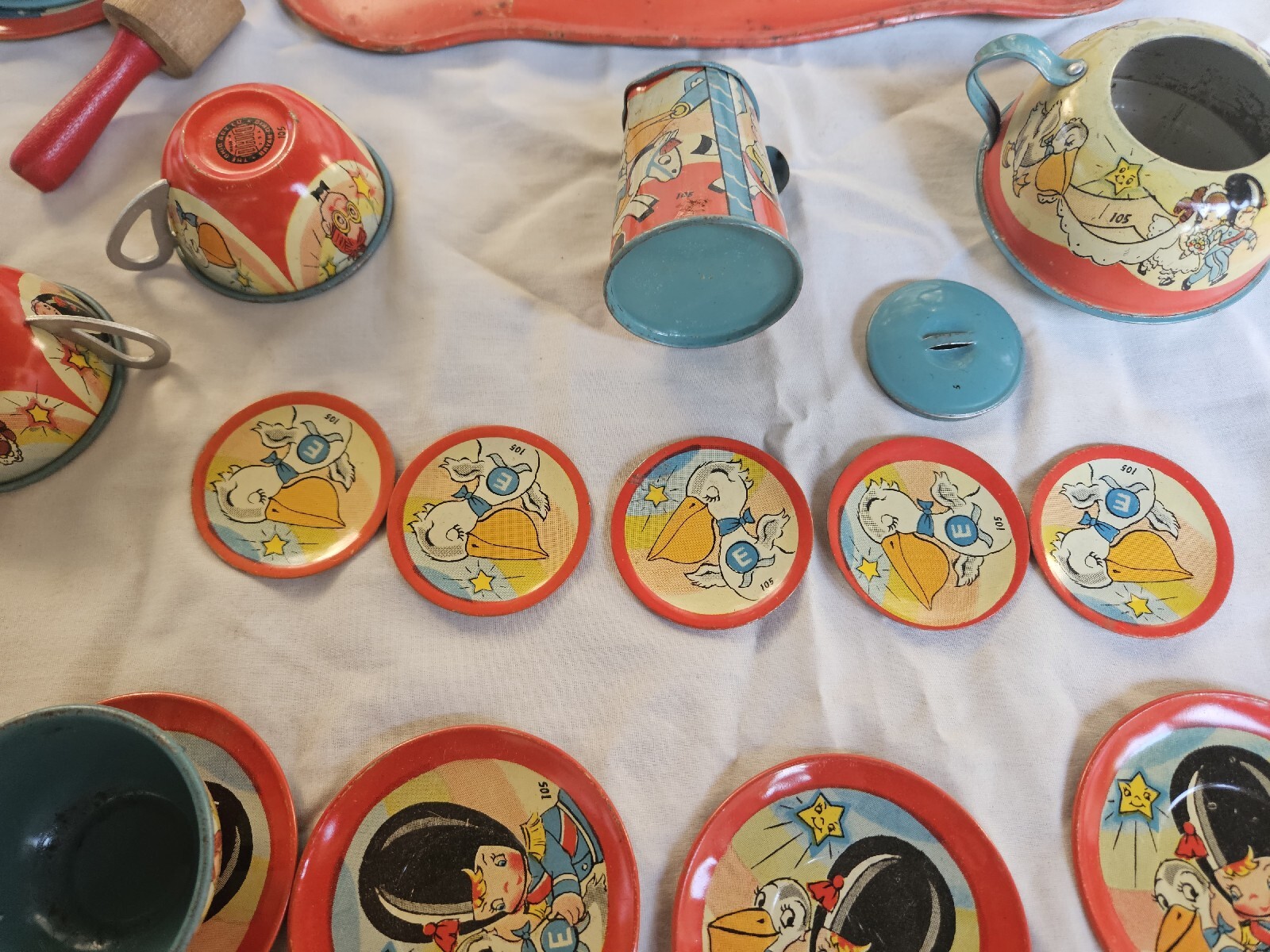 Vintage OHIO ART Tin Litho 28 Piece Tea Set Girl Bride Boy Groom Marriage Rare