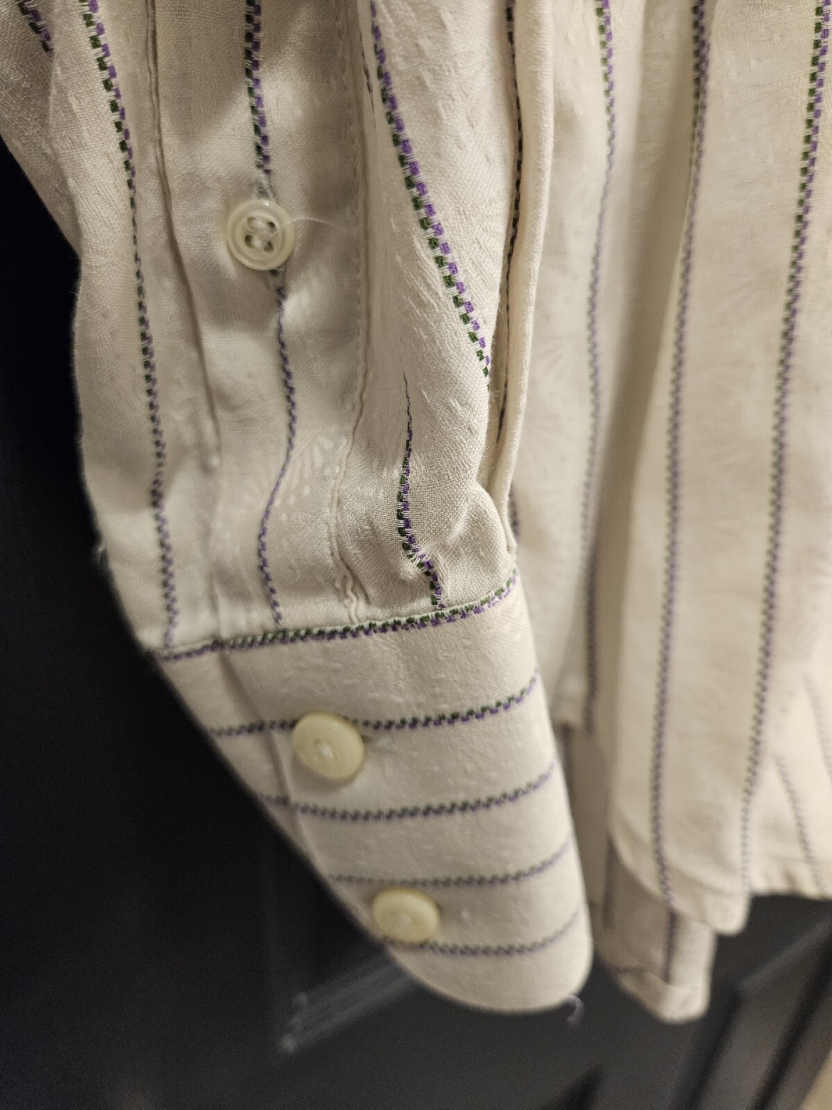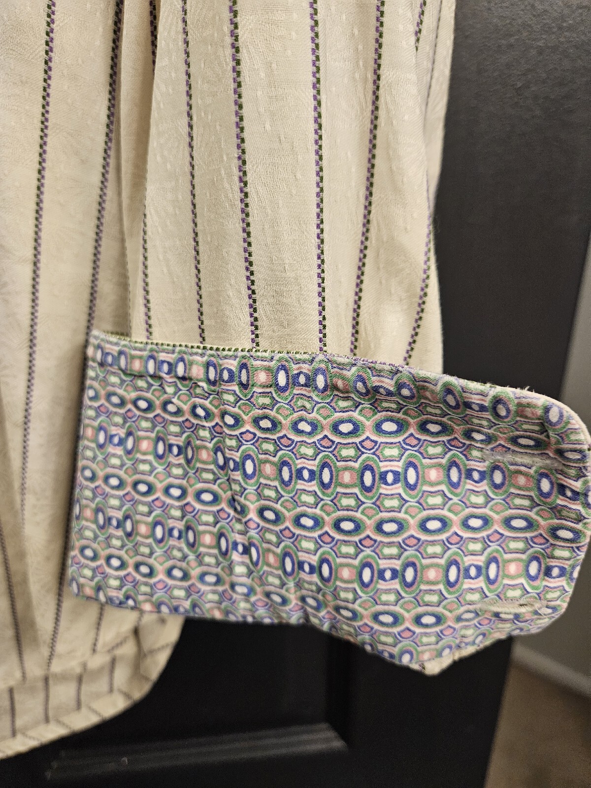 как выглядит Robert Graham Mens Large Button Up Dress Shirt Beige Blue Purple Stripes фото