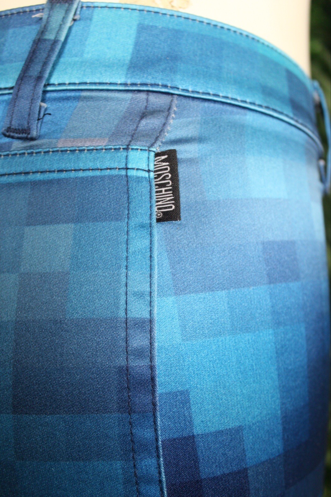 Vintage Moschino Blue Pixelated Pants Size 6 Made In Italy