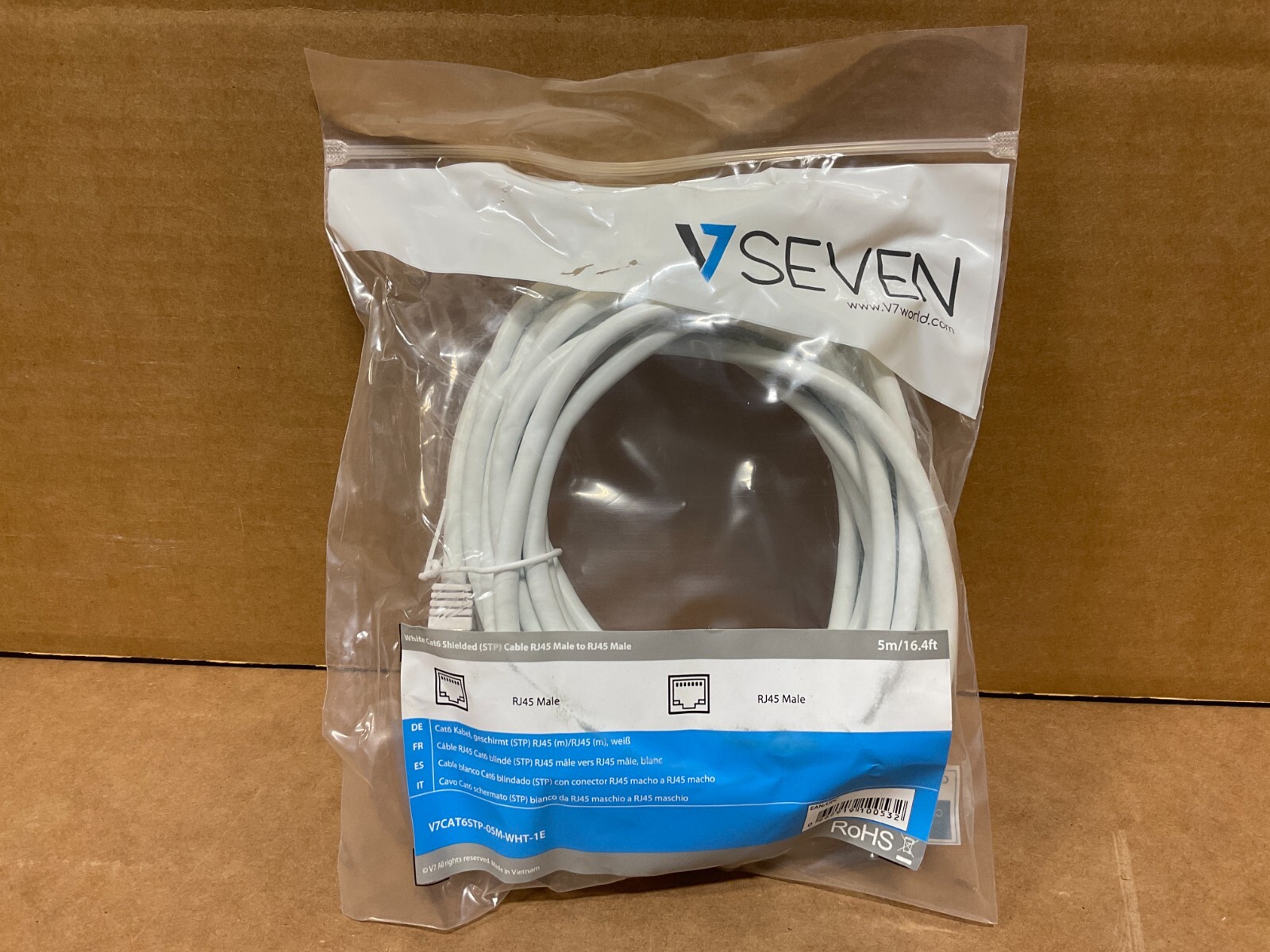 как выглядит V7 STP RJ45 CAT-6 Patch Cable Snagless Molded 5 meters LOT OF 5 V7CAT6STP-05M-WH фото